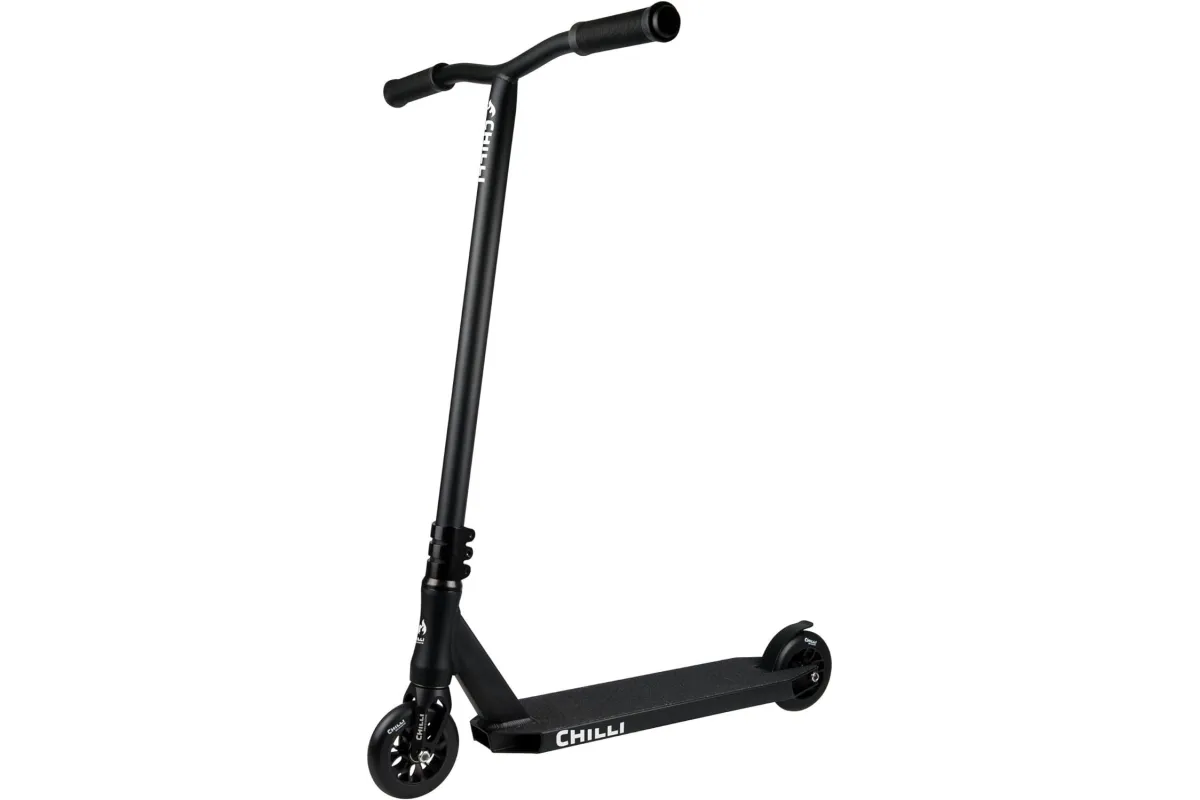 Hulajnoga Chilli Reaper Grim to doskonały wybór dla początkujących i średniozaawansowanych jeźdźców, którzy szukają solidnego sprzętu w przystępnej cenie. Dzięki wysokiej jakości materiałom, takim jak stop aluminium i stal 4130, hulajnoga jest trwała i wytrzymała, jednocześnie zachowując niską wagę.