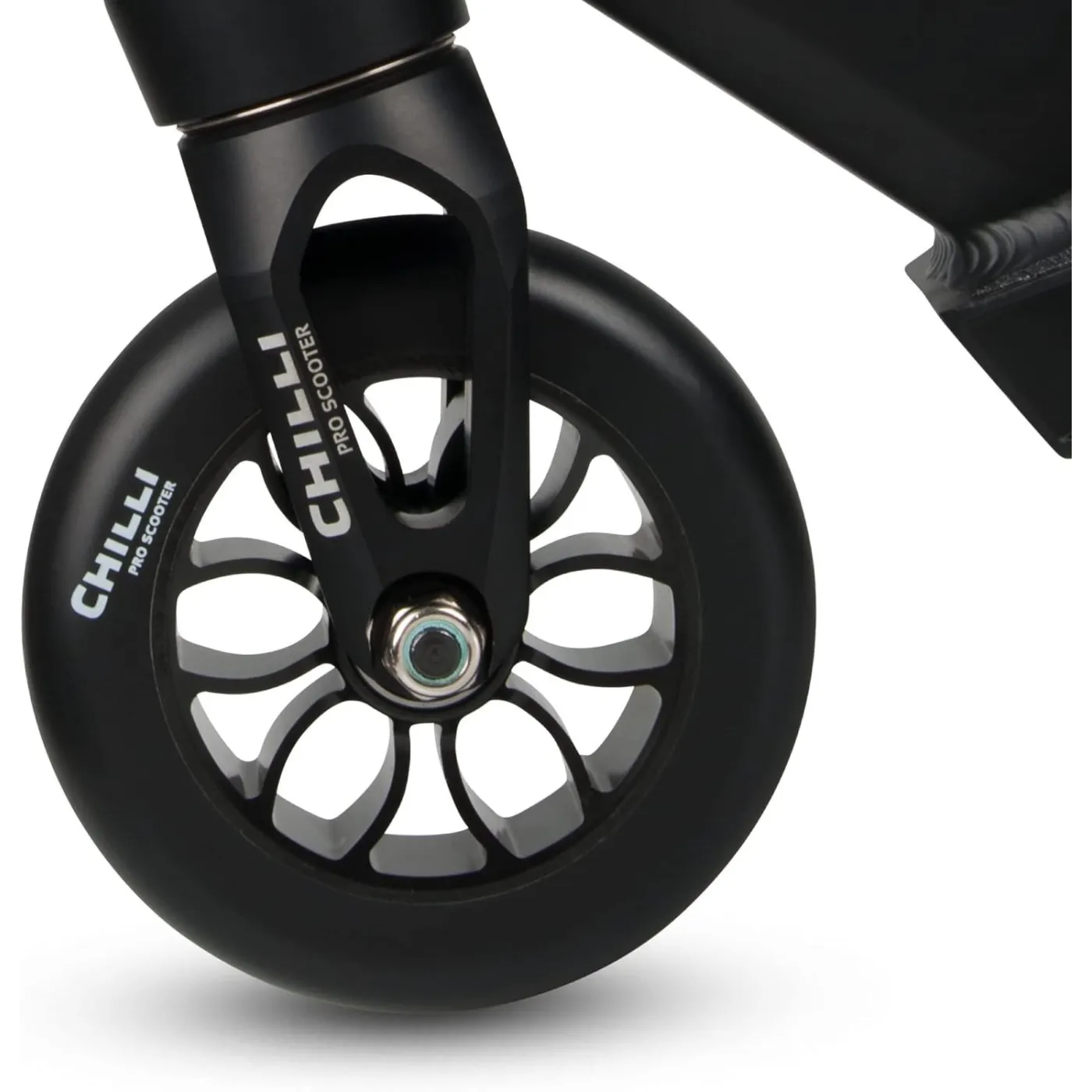 Każdy element został starannie zaprojektowany, aby zapewnić maksymalny komfort i wydajność podczas jazdy, a unikalny system kompresji HIC Chilli Spider HIC oraz łożyska ABEC 9 sprawiają, że hulajnoga jest niezwykle responsywna i łatwa w obsłudze.