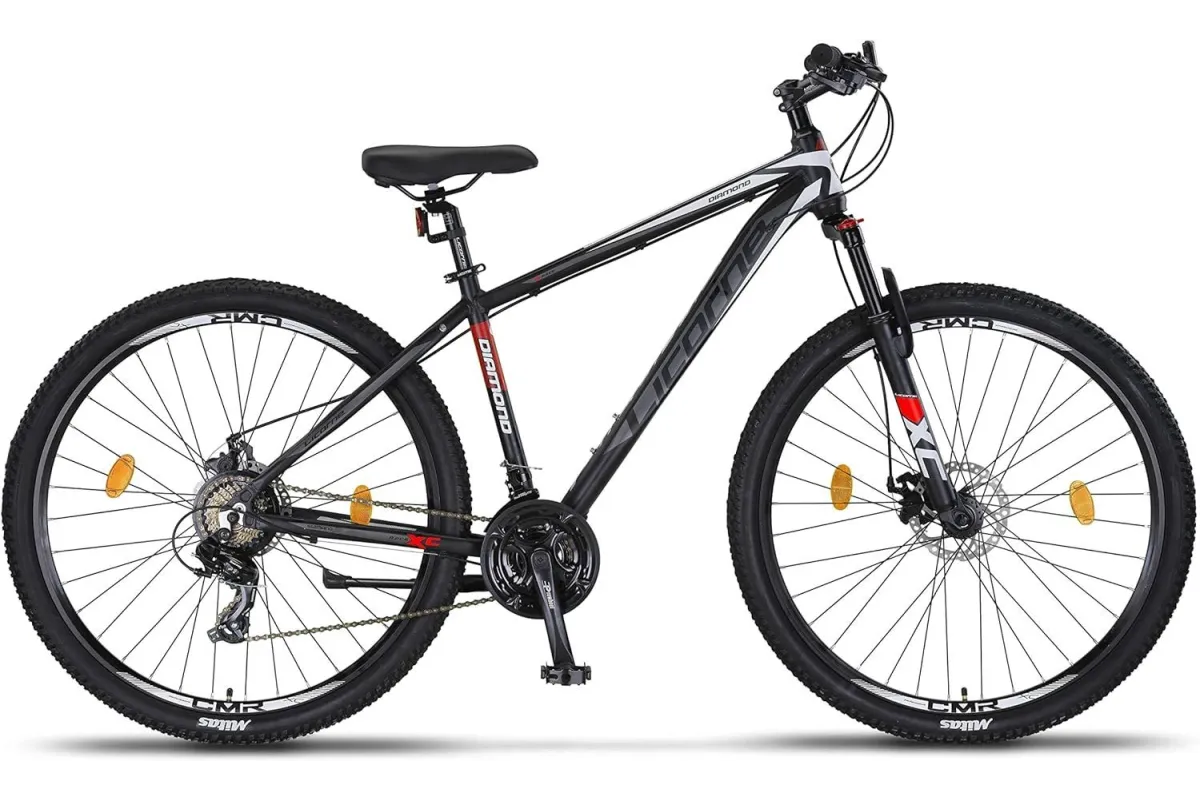 🔧 Diamond nie tylko zachwyca ciekawym wyglądem, ale także dobrym wyposażeniem. Należą do niego między innymi 21-biegowe Shimano, które z łatwością zmienisz przy pomocy manetek cynglowych. Niezbędne hamowanie zapewniają mechaniczne hamulce tarczowe z przodu i tyłu.