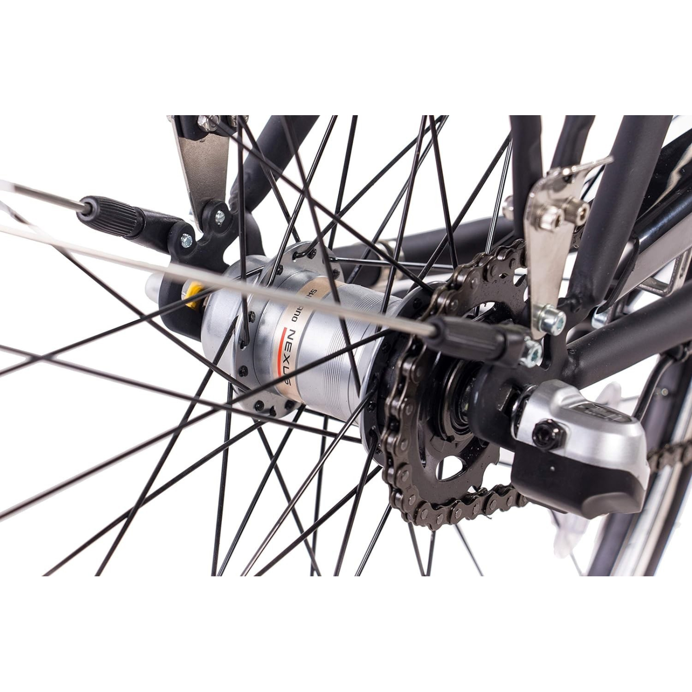 💪 Wyposażony w 3-biegową przerzutkę Shimano, umieszczoną wewnątrz piasty, zapewnia płynne zmiany biegów, co ułatwia pokonywanie różnych tras o zróżnicowanym ukształtowaniu terenu. Manetka obrotowa Nexus pozwala intuicyjnie sterować przerzutką, co sprawia, że jazda jest jeszcze bardziej komfortowa.