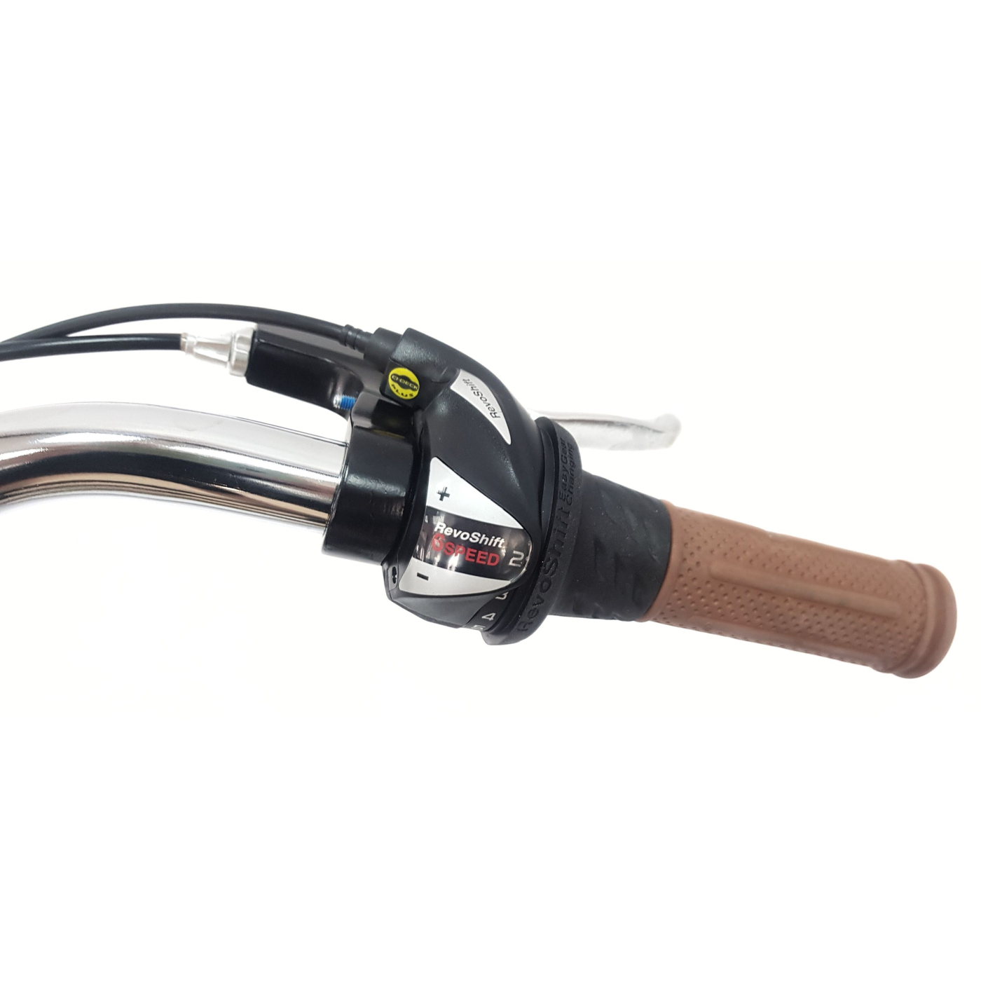 ✔️ Wyposażony w hamulce typu V-Brake, Beach Cruiser zapewnia bezpieczne i skuteczne hamowanie, co jest istotne w czasie jazdy po różnorodnych terenach. Przerzutka 6-biegowa Shimano oraz manetka obrotowa Revoshift ułatwiają zmianę biegów, zapewniając płynną jazdę zarówno w każdych warunkach.