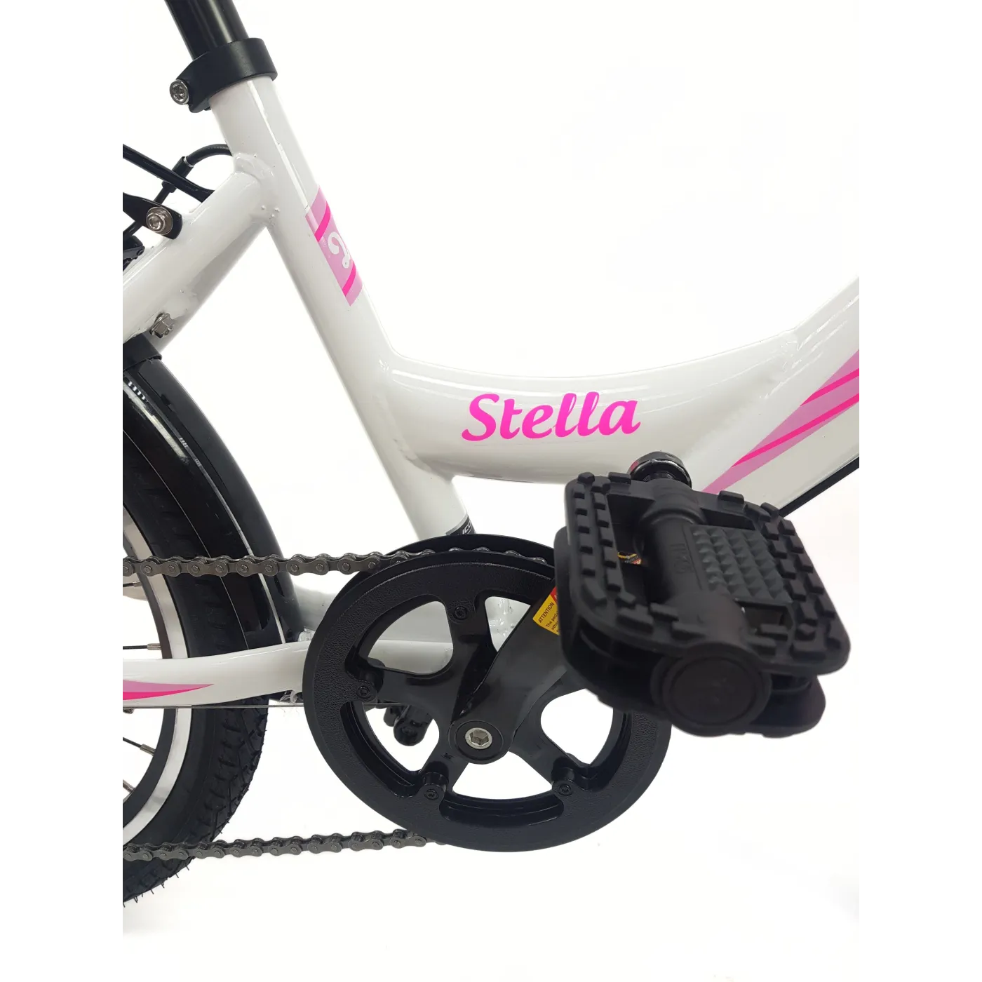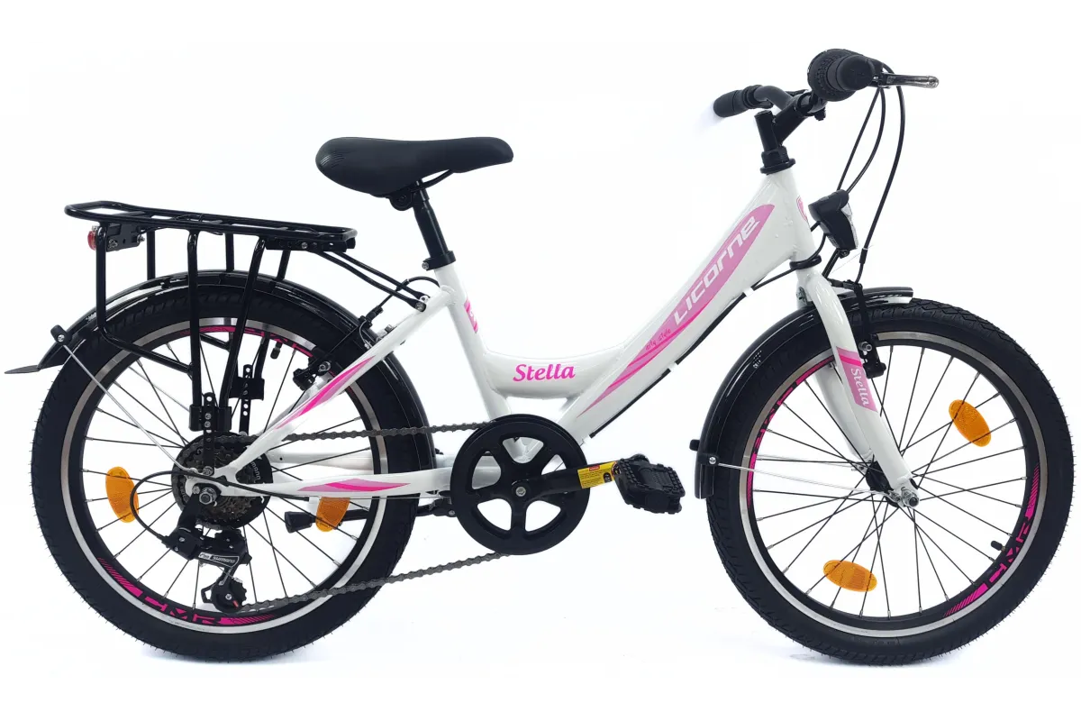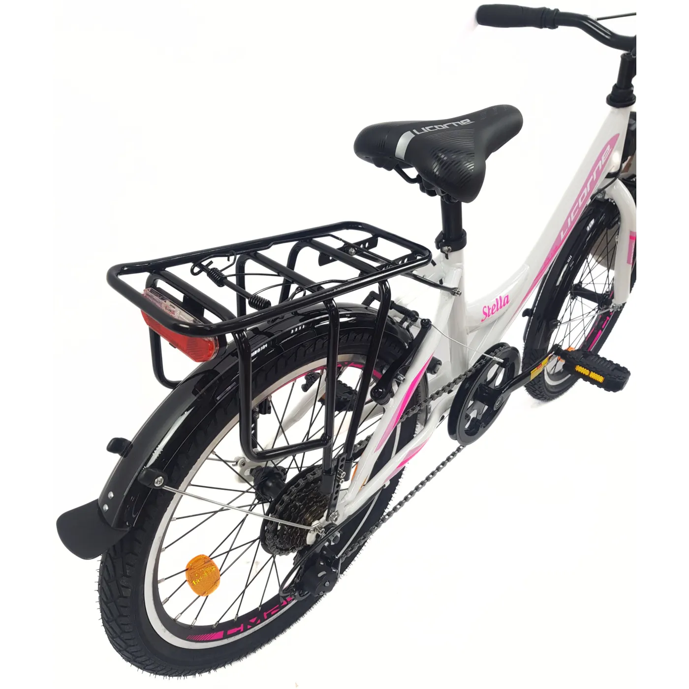 🔔 Rower Licorne Bike Stella został wyposażony w praktyczne dodatki, takie jak dzwonek, oświetlenie, bagażnik, stopka, odblaski i błotniki, które zwiększają bezpieczeństwo podczas jazdy. Biały kolor z różowymi wstawkami sprawia, że rowerek zachwyca swoim urokiem i jest idealny dla małych księżniczek.