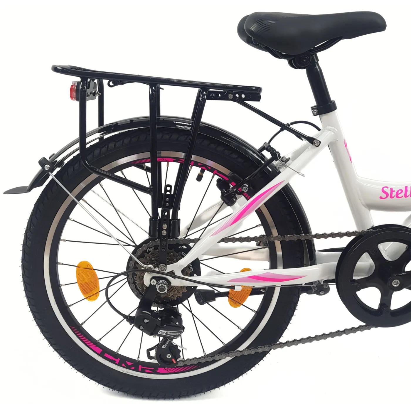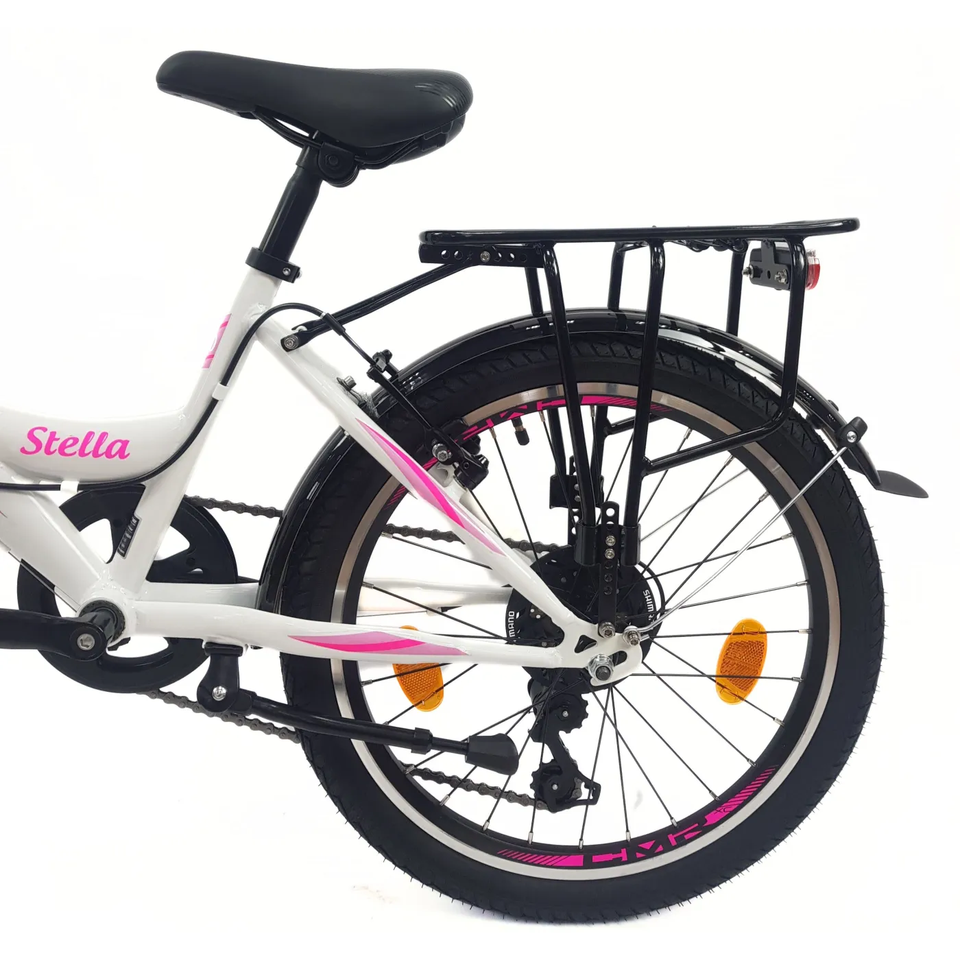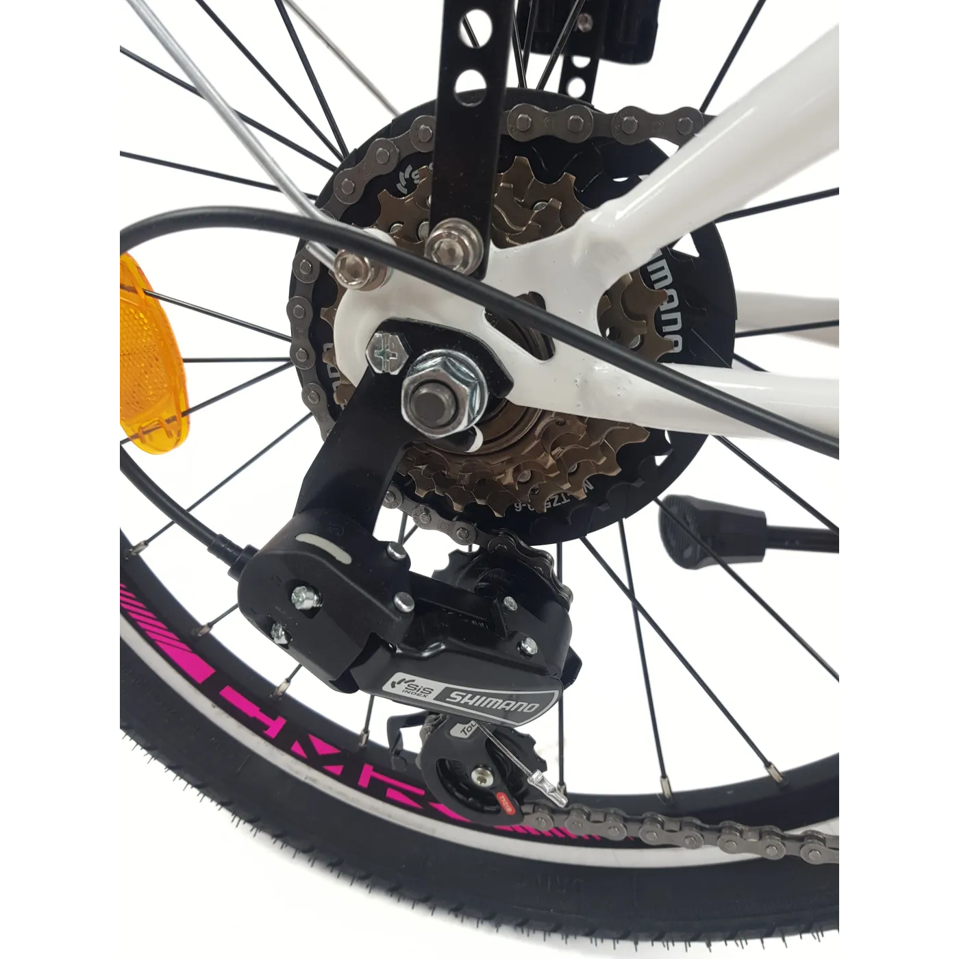 🌈 Z 6-biegową przerzutką Shimano Tourney dziewczynka może dostosować tempo jazdy do własnych preferencji i warunków drogowych. Koła o średnicy 20" oraz opony o szerokości 1,75" zapewniają komfortową i stabilną jazdę po każdym terenie.