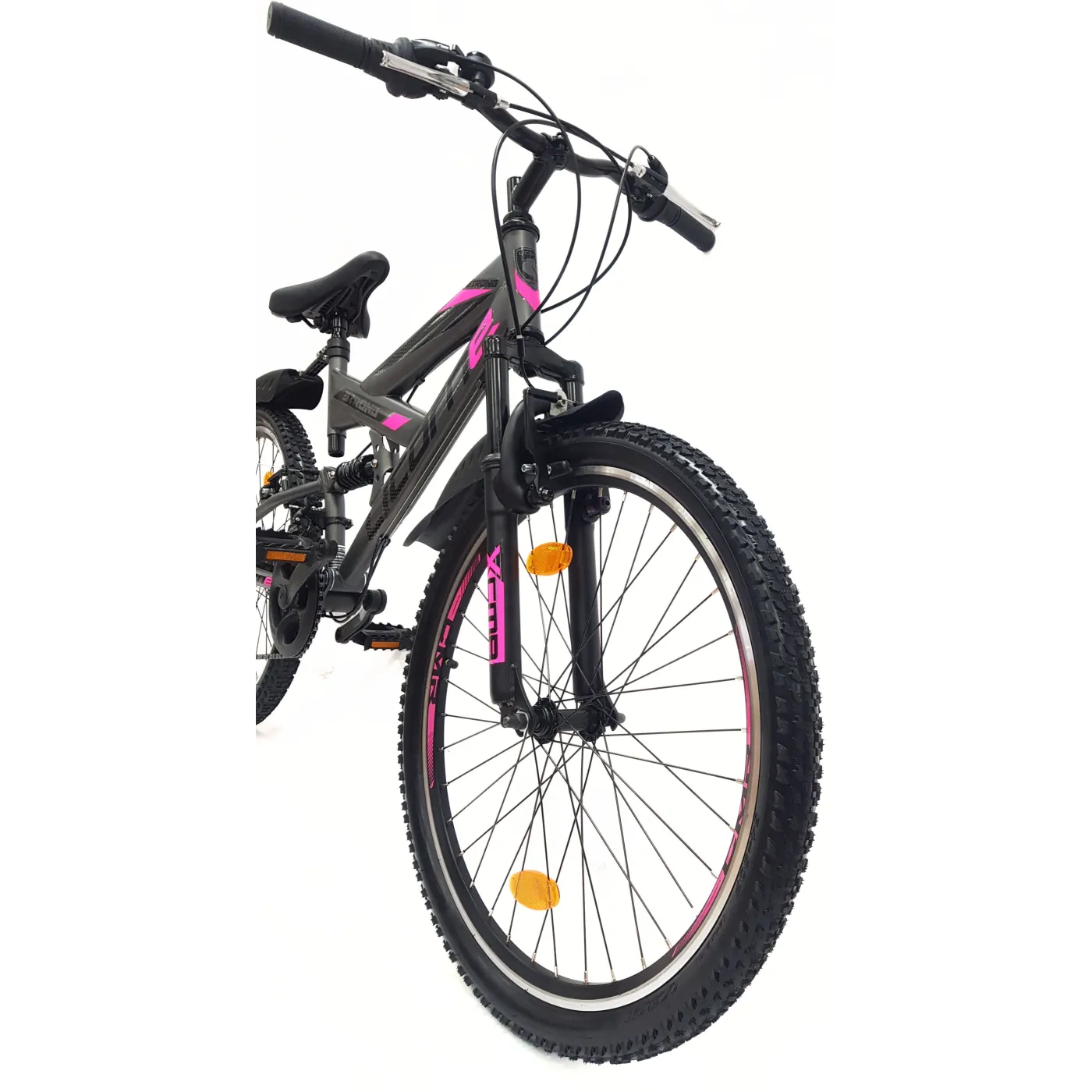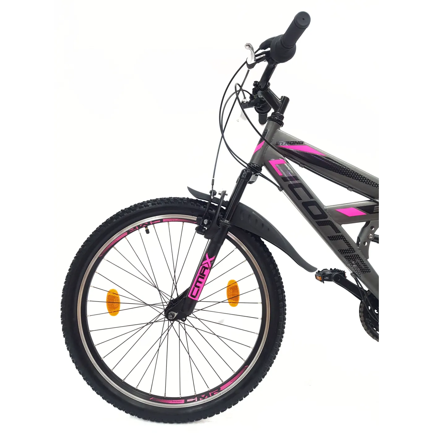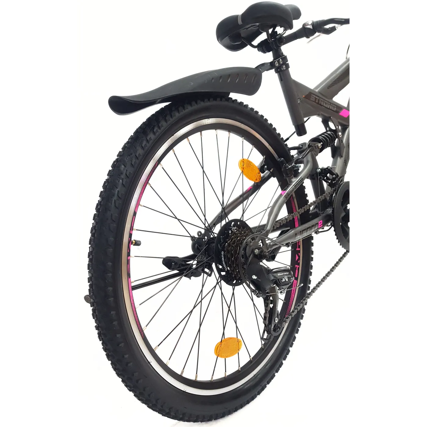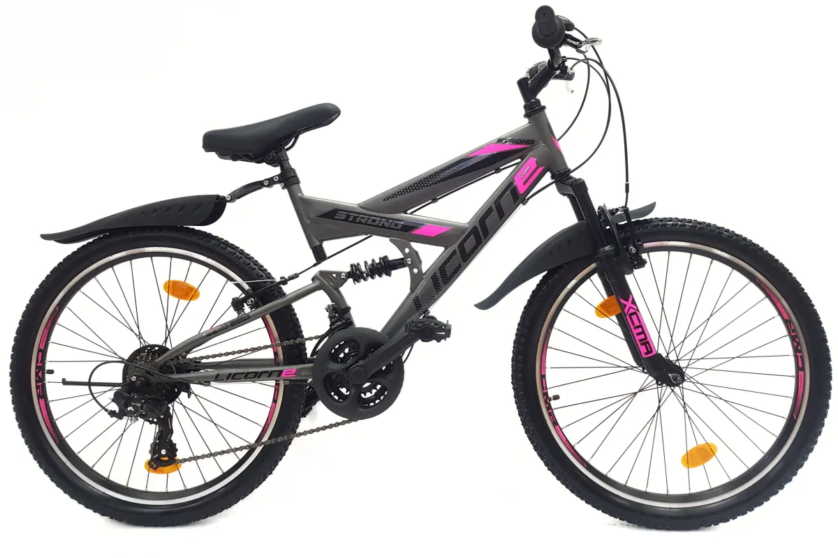 👉 Amortyzatory zarówno z przodu, jak i z tyłu roweru absorbują wstrząsy i nierówności terenu, co przekłada się na wygodniejszą jazdę i mniejsze obciążenie dla ciała. Opony 24" x 2,10" zapewniają doskonałą przyczepność i stabilność na różnych rodzajach podłoża.