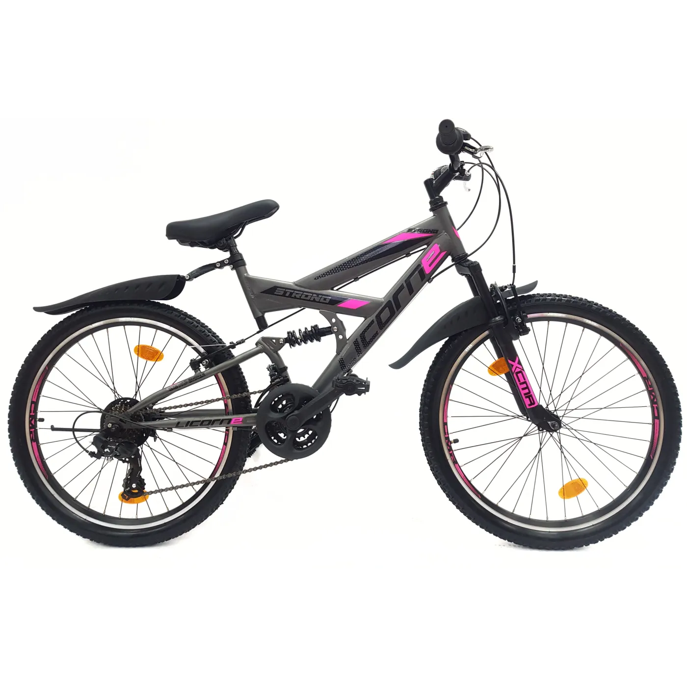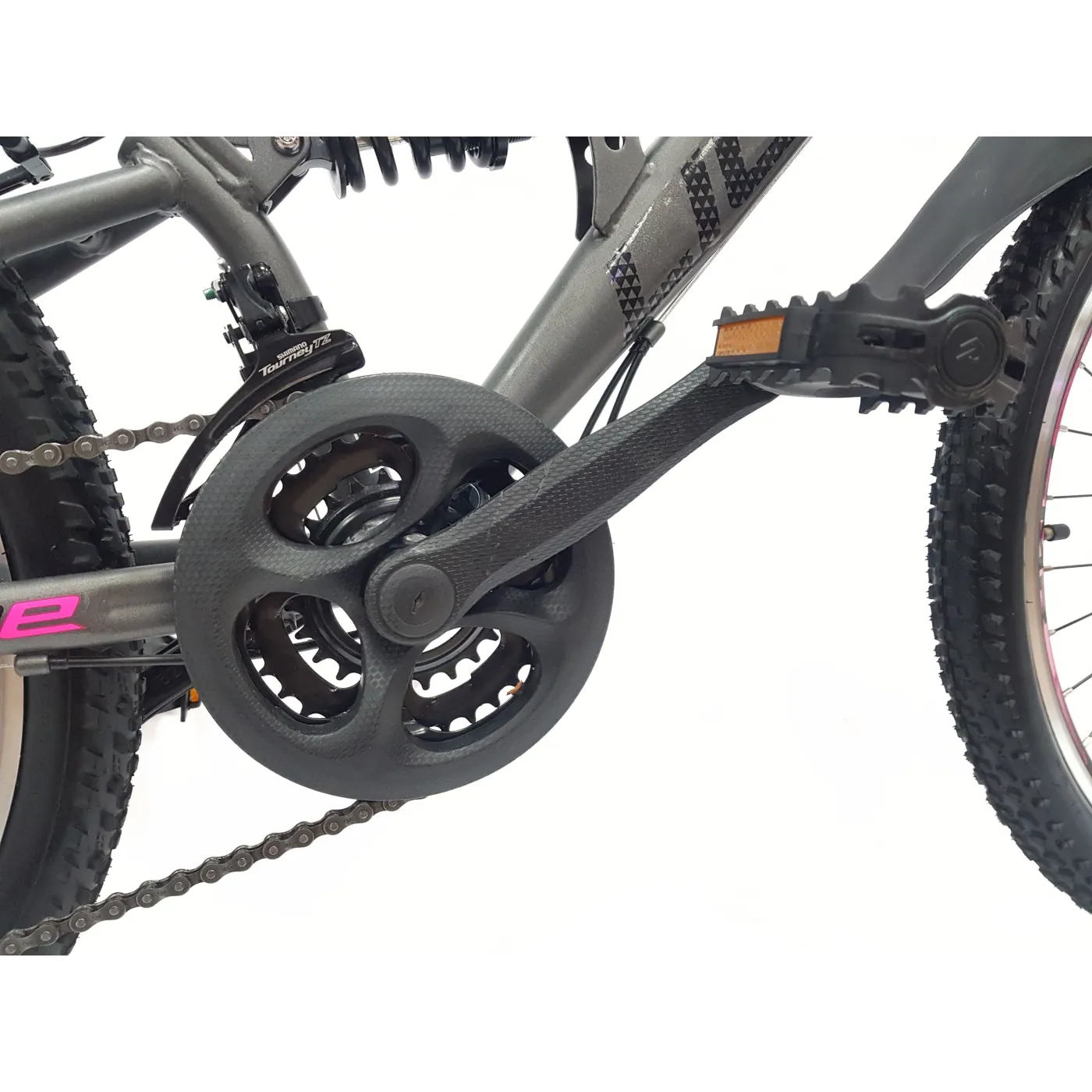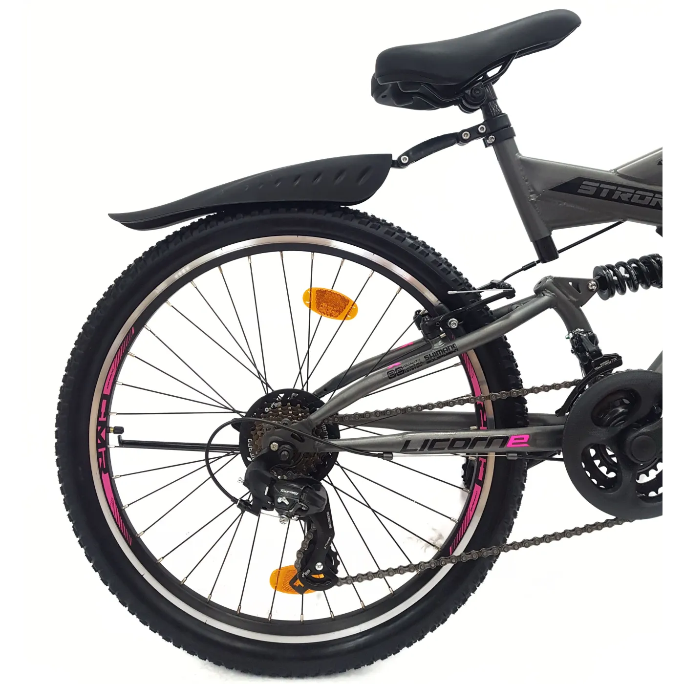 👉 Amortyzatory zarówno z przodu, jak i z tyłu roweru absorbują wstrząsy i nierówności terenu, co przekłada się na wygodniejszą jazdę i mniejsze obciążenie dla ciała. Opony 24" x 2,10" zapewniają doskonałą przyczepność i stabilność na różnych rodzajach podłoża.