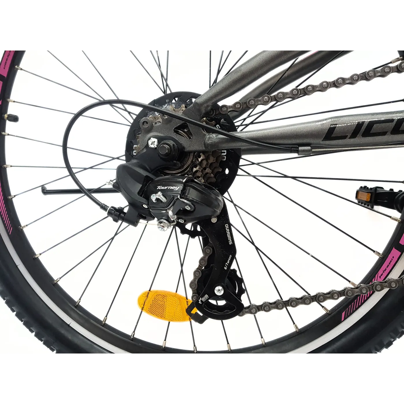 ✨ 21-biegowe przerzutki Shimano zapewniają szeroki zakres przełożeń, co umożliwia ich płynne dostosowanie do własnych preferencji i warunków terenowych. Manetki obrotowe Revoshift ułatwiają szybką i precyzyjną zmianę biegów.