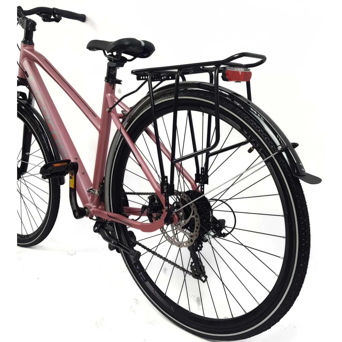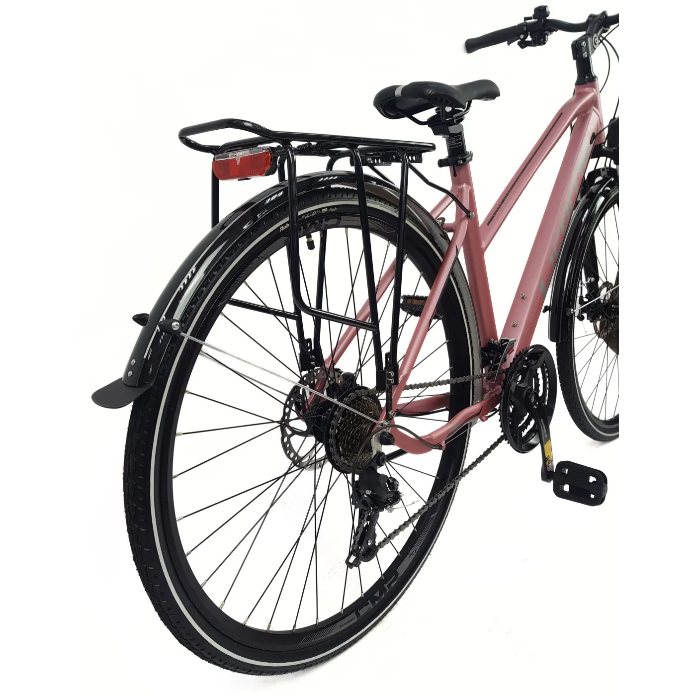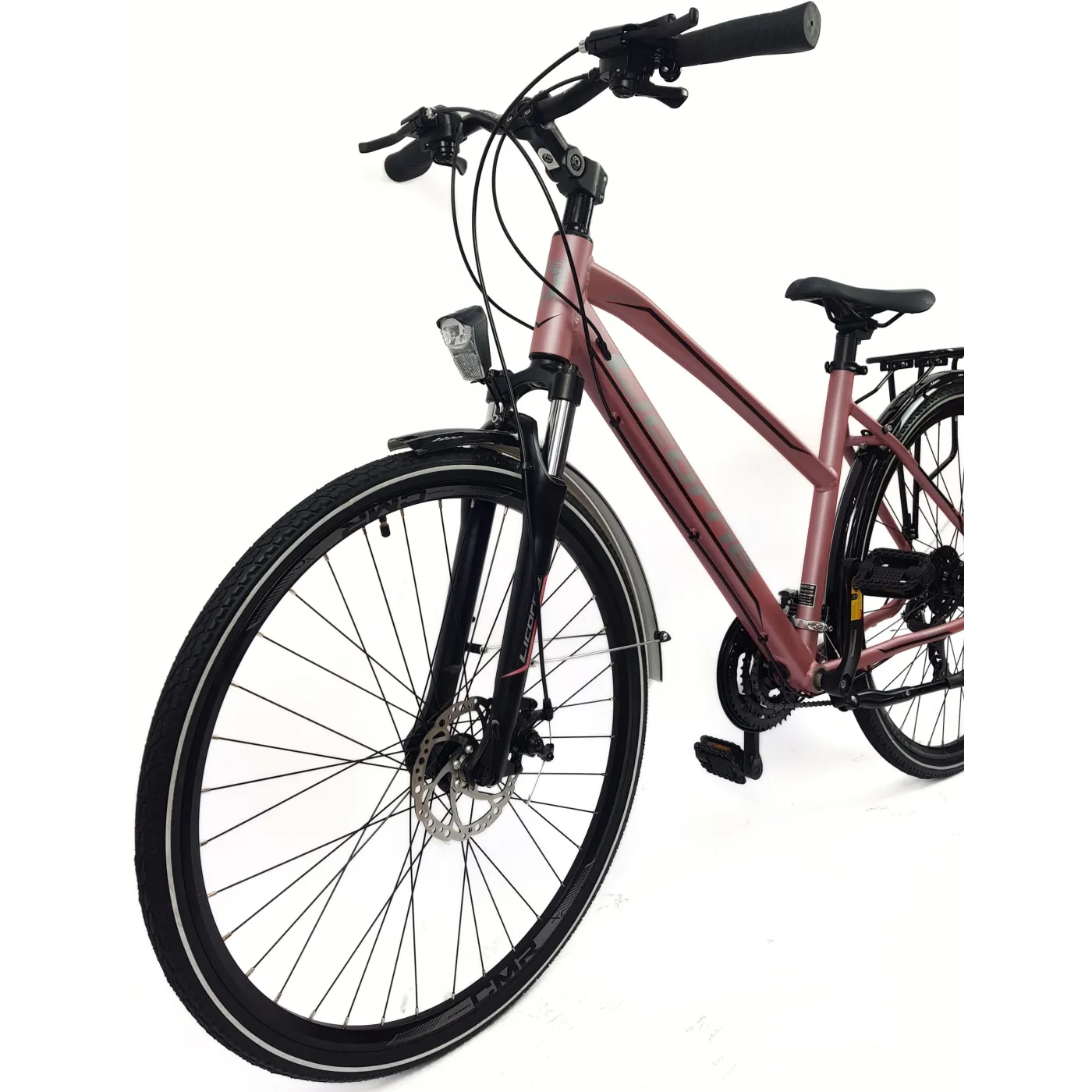 👌 Opony w rozmiarze 28" 700 x 38C zapewnią dobrą przyczepność i stabilność na każdym podłożu, a amortyzowany widelec złagodzi nierówności terenu, zapewniając komfortową jazdę. Dodatkowo rower wyposażony jest w bagażnik, błotniki oraz światła, co sprawia że jest gotowy do użytku w każdych warunkach.