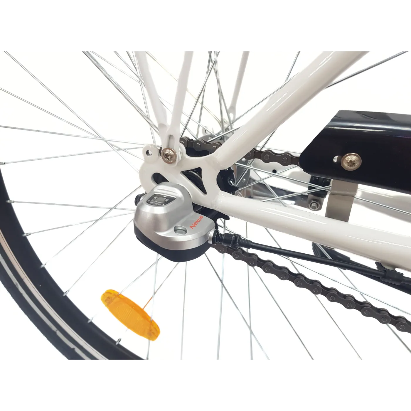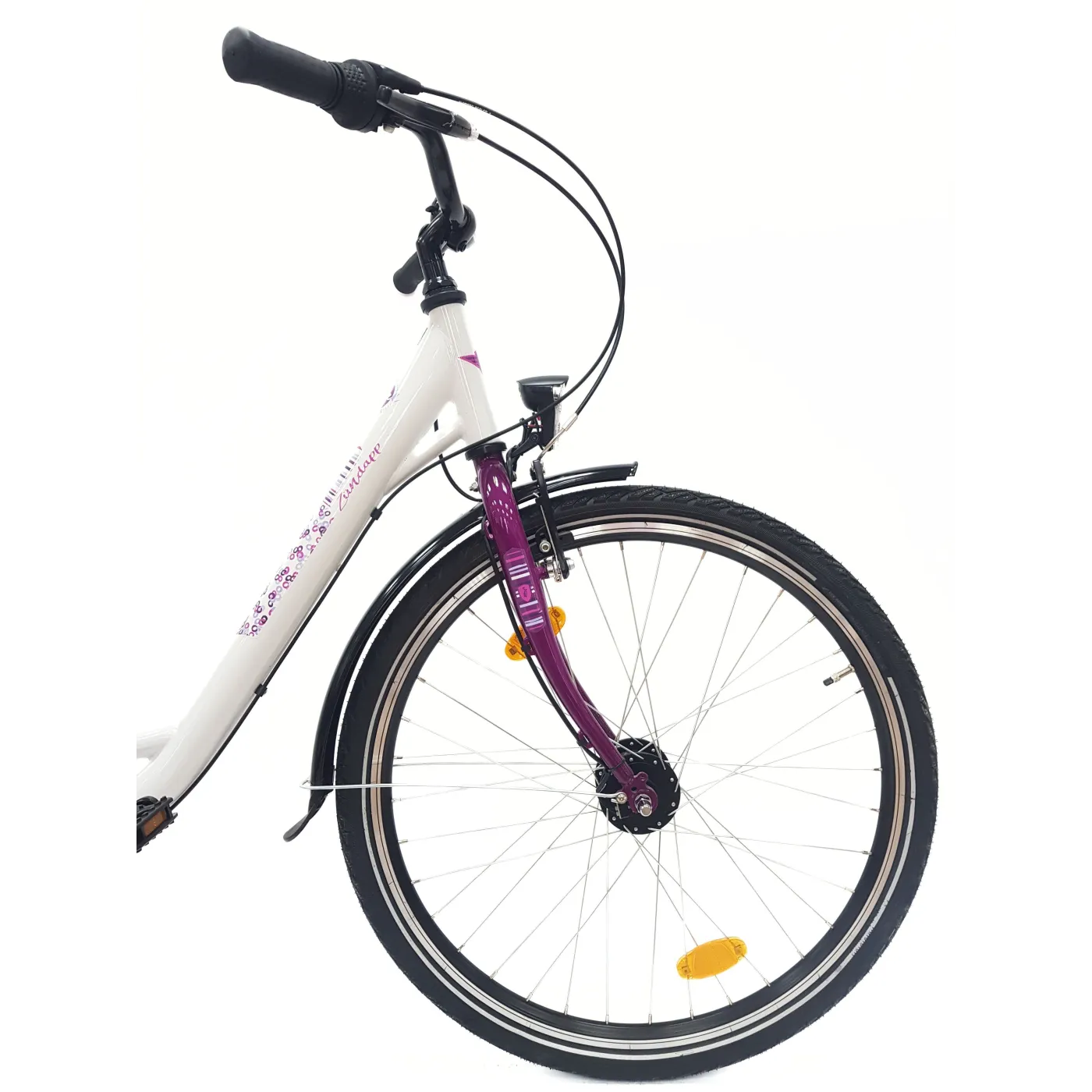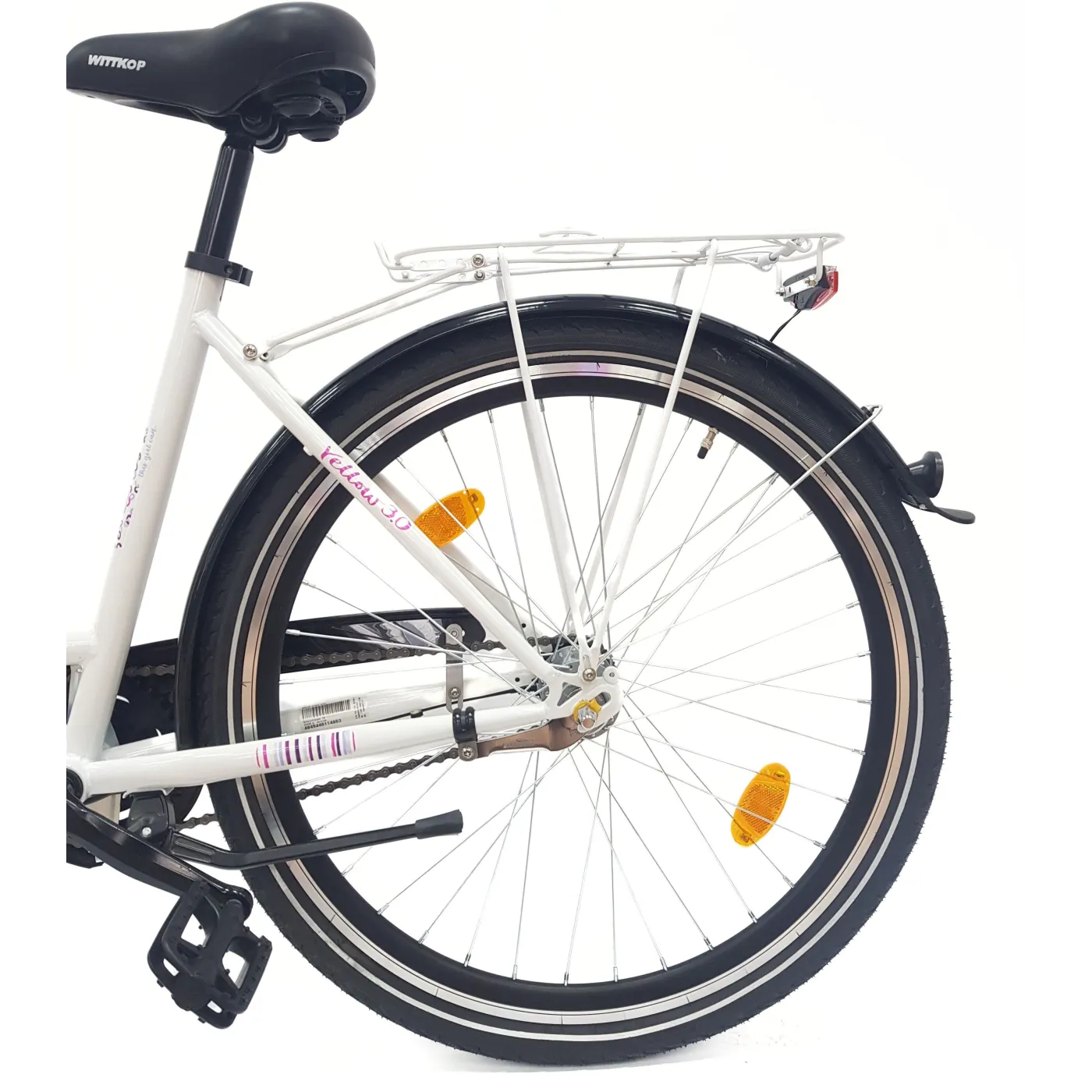 ✨ Biało-różowy kolor w połysku nadaje rowerowi stylowy i kobiecy wygląd, dzięki czemu jest atrakcyjny zarówno wizualnie, jak i funkcjonalnie. To doskonały wybór dla osób, które cenią sobie zarówno wygodę, jak i estetykę podczas codziennej jazdy po mieście.