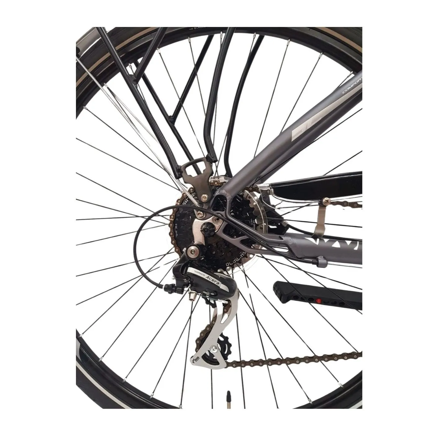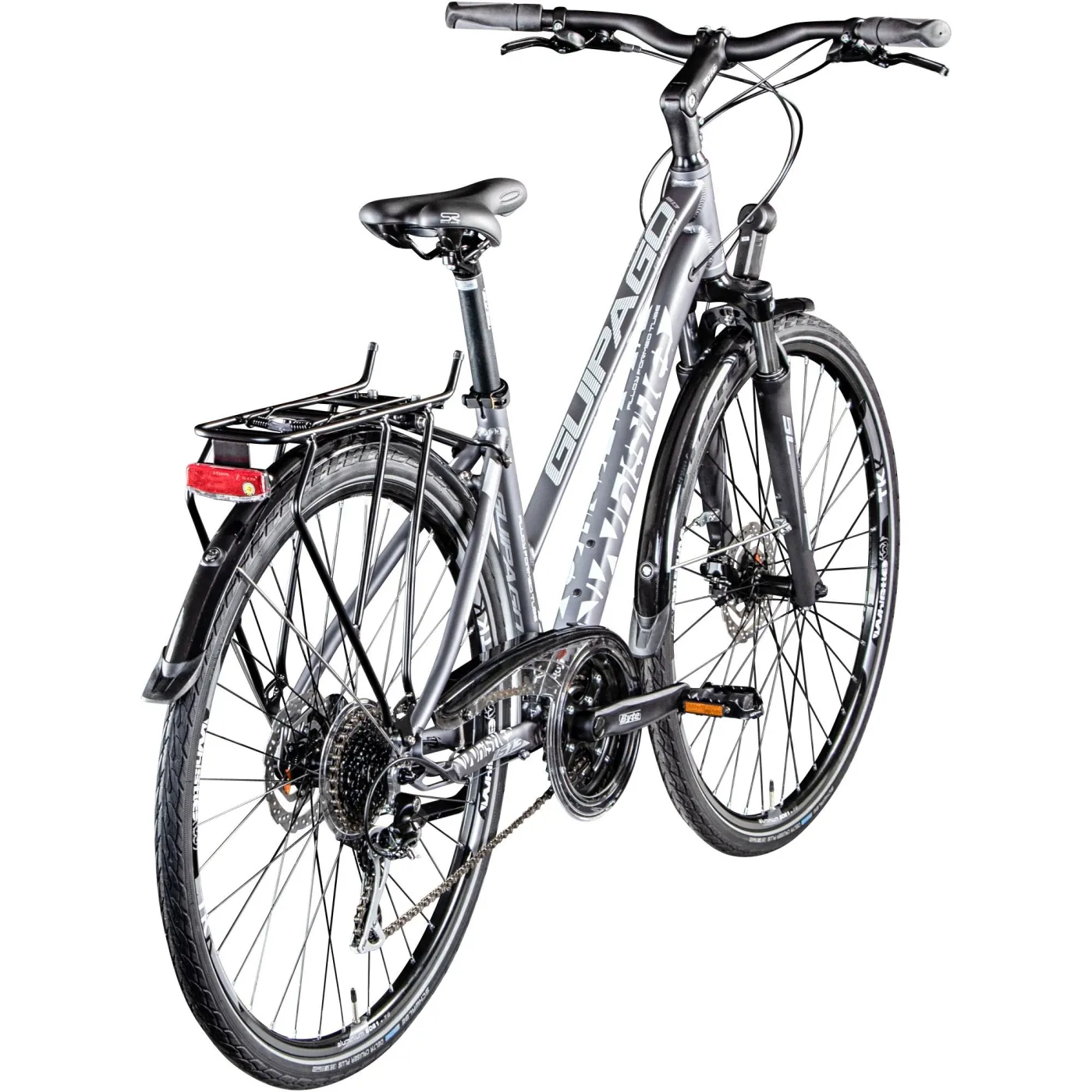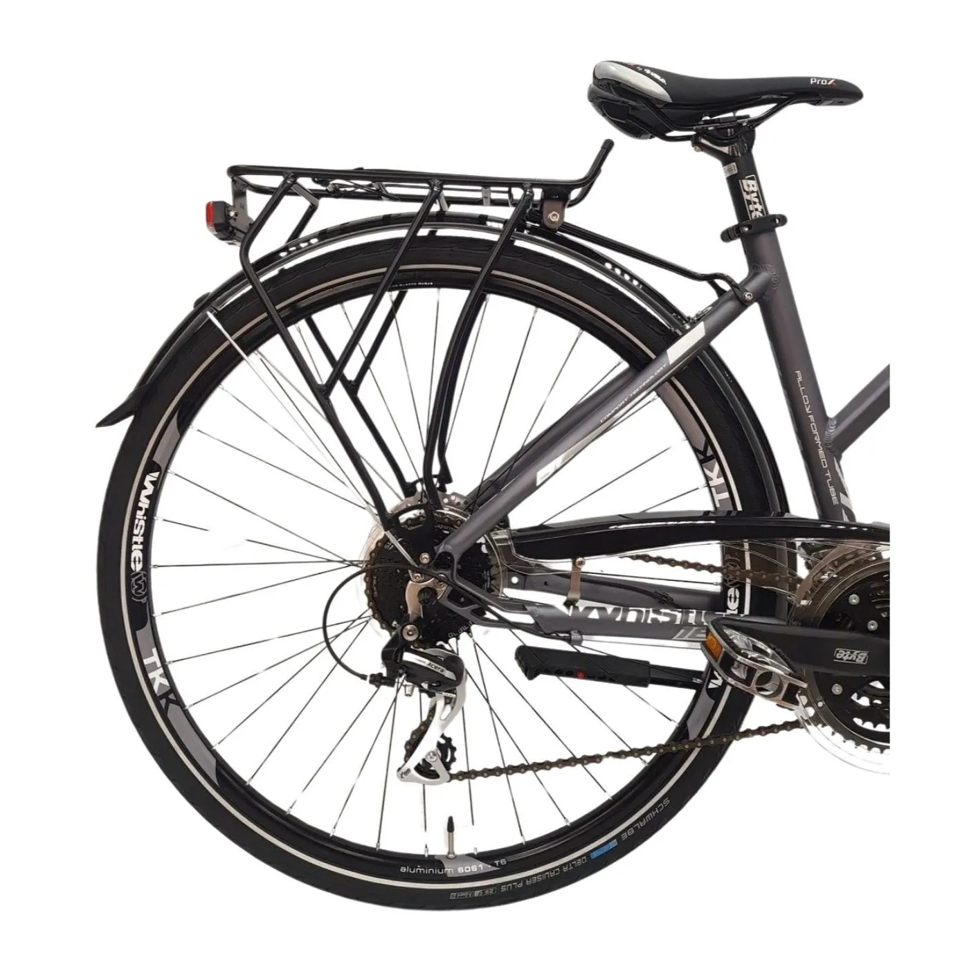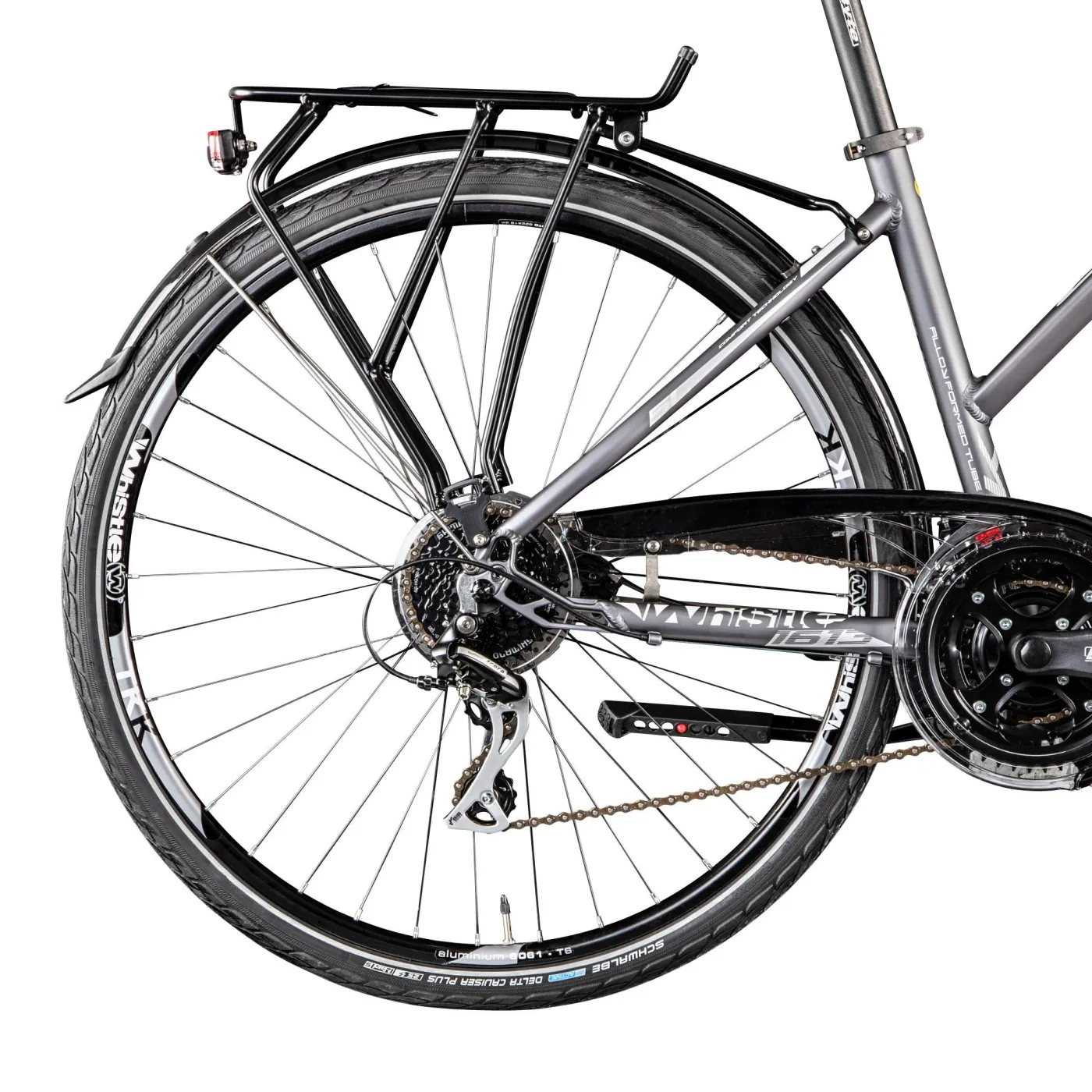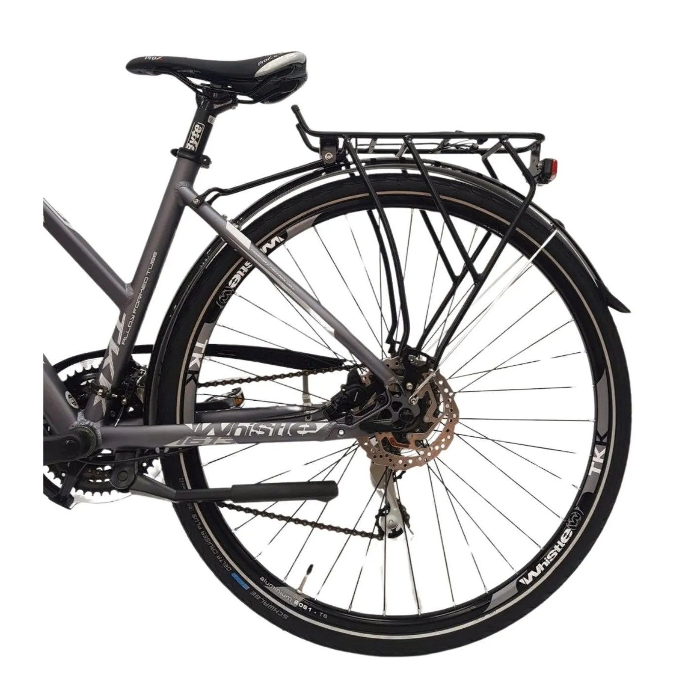 🚴♀️ Dzięki manetce cynglowej zmiana biegów odbywa się z łatwością, a koła o rozmiarze 28" z oponami 28"x1,50" (700x38c) zapewniają stabilność i pewność prowadzenia nawet przy większych prędkościach. Dodatkowo wyposażony w dzwonek i oświetlenie bateryjne, rower Whistle Guipago 2050 jest gotowy do bezpiecznych i komfortowych przejażdżek nawet w nocy.