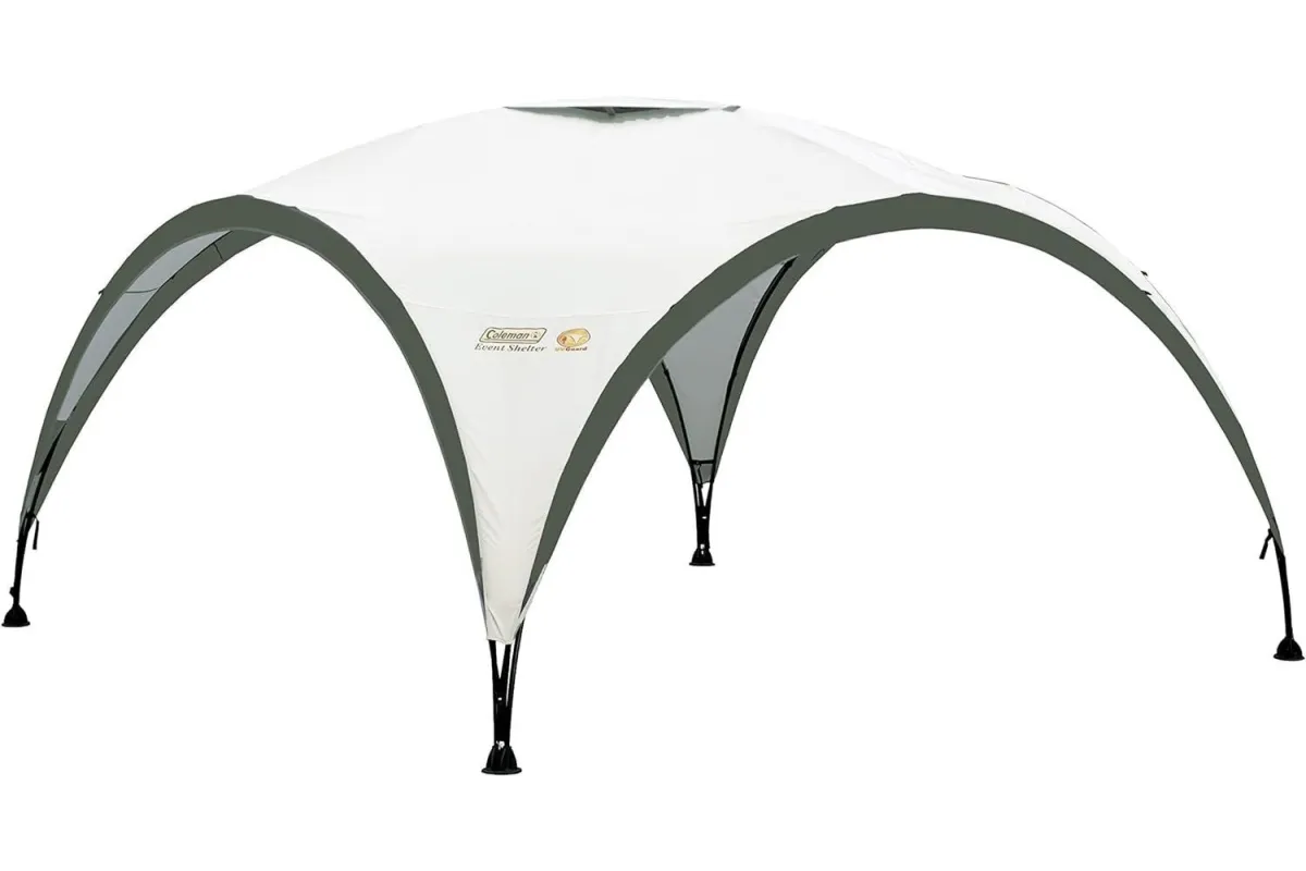 Namiot Coleman Event Shelter XL jest wyposażony w certyfikowaną osłonę UV Coleman z SPF 50+, która zapewnia ochronę zarówno przed promieniami ultrafioletowymi słońca, jak i przed mżawką. Mocna konstrukcja ramy ze stali malowanej proszkowo z zabezpieczonymi połączeniami wtykowymi z PVC jest szybka i łatwa w montażu, a otwory w stopach umożliwiają przykręcenie lub przymocowanie namiotu imprezowego do podłogi. Altana zapewnia zacienioną powierzchnię 20,2 m2 z ochroną UV, a jednocześnie umożliwia ucieczkę gorącego powietrza dzięki otworom wentylacyjnym w górnej części tropiku.