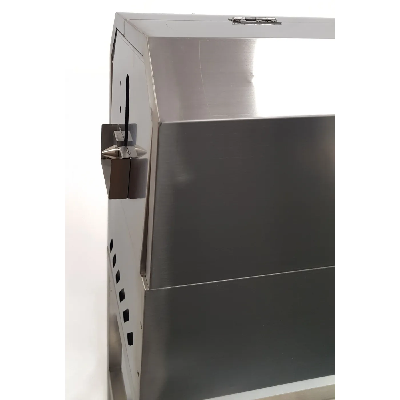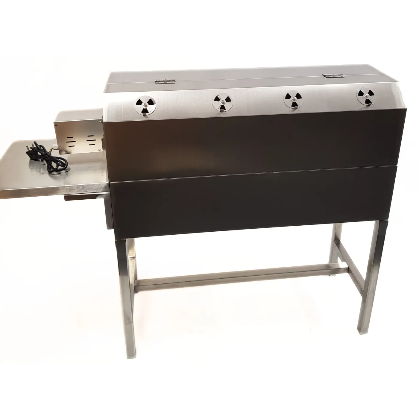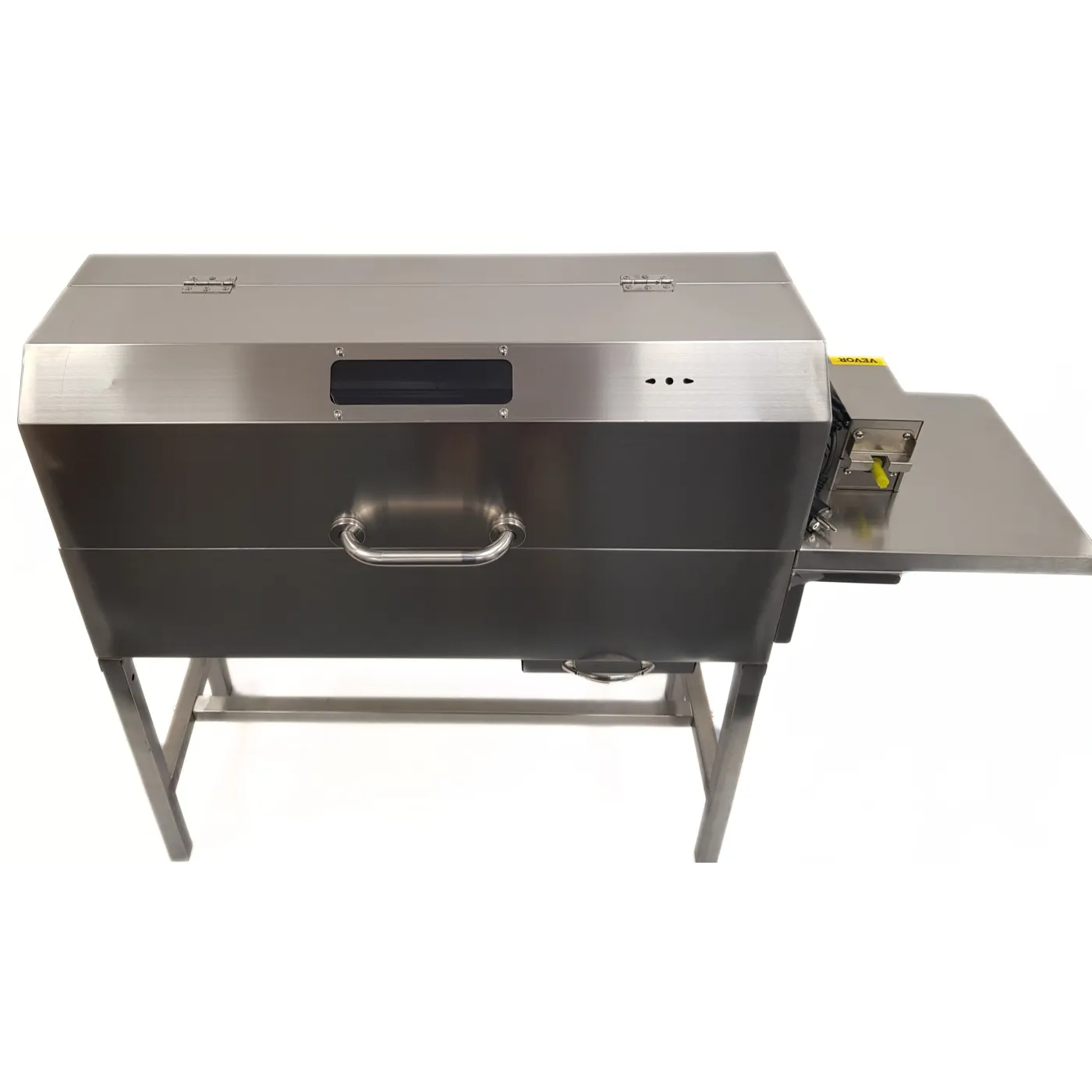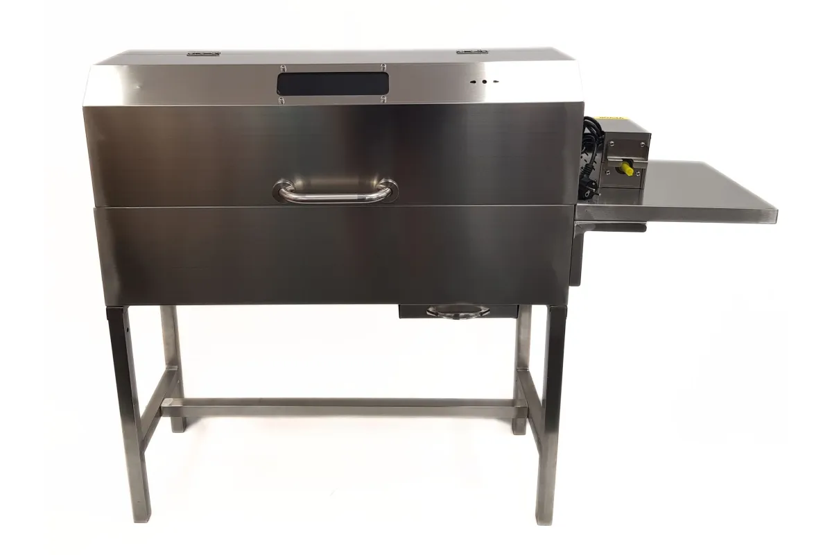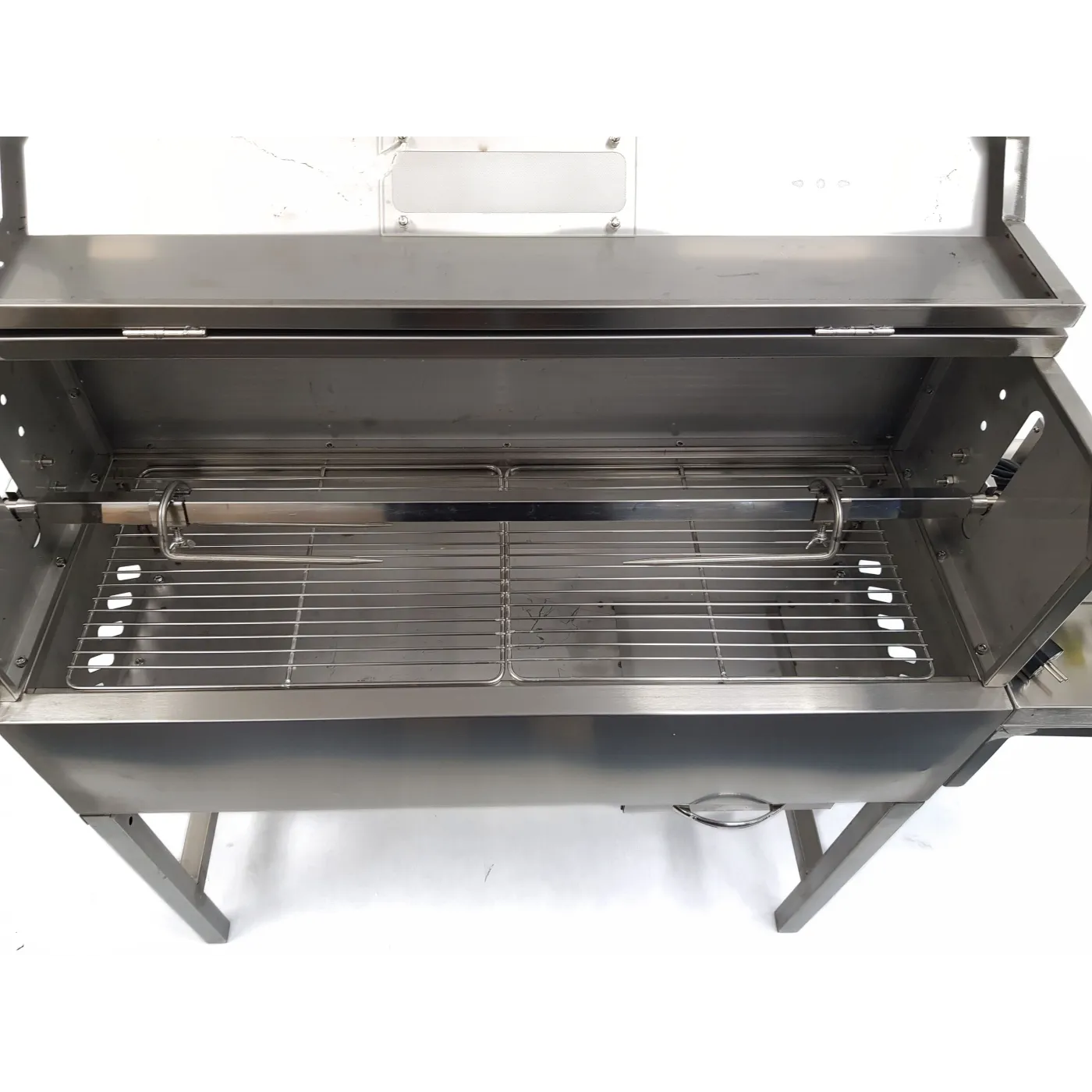 Ruszt o wymiarze 27,5 x 79 cm to wystarczająco duża powierzchnia do grillowania dla całej rodziny, a obrotowy rożen pozwala przyrządzać różnorodne potrawy. Jego wysokość można dowolnie regulować. Pokrywa utrzymuje ciepło oraz chroni przed oparzeniami. Dodatkowo okienko inspekcyjne pozwala na monitoring stanu przygotowywanych dań bez konieczności otwierania klapy.