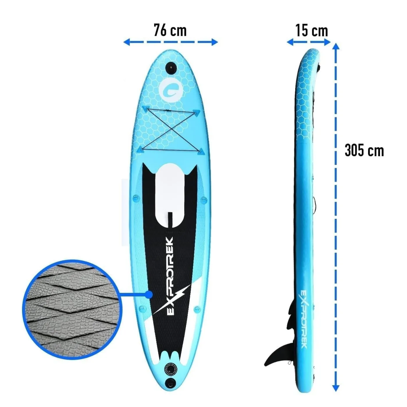 Deska SUP marki Exprotrek to połączenie bezpieczeństwa i wygody. Dzięki swojej lekkości oraz elastyczności, nadaje się idealnie zarówno dla początkujących, jak i zaawansowanych miłośników sportów wodnych, umożliwiając łatwe utrzymanie równowagi i wysoką stabilność.