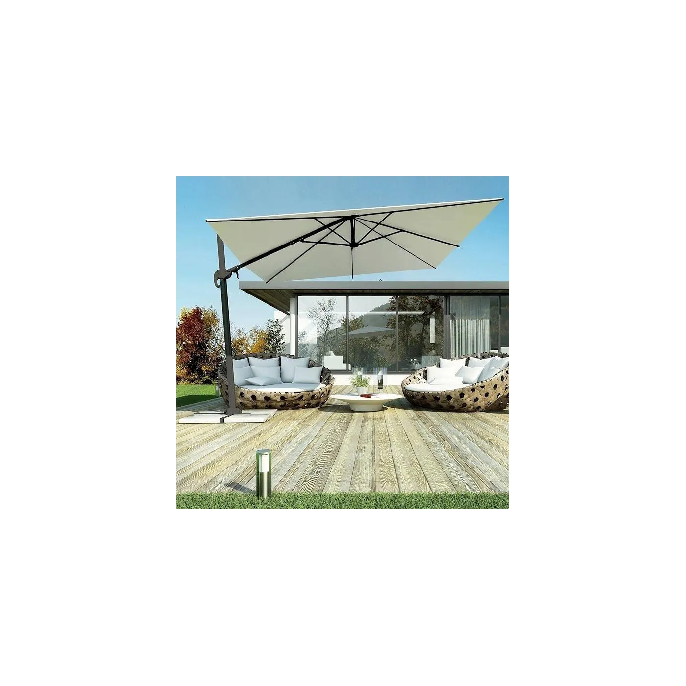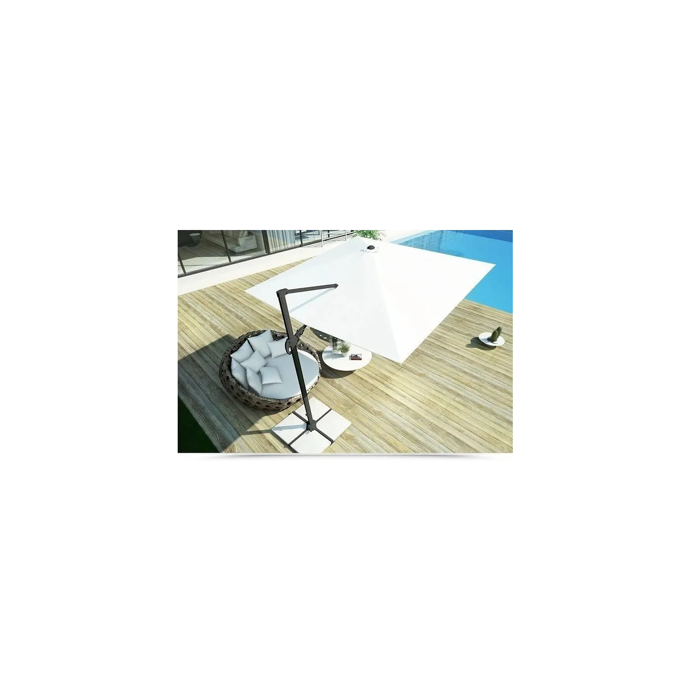 Parasol ogrodowy Megashopitalia to idealne rozwiązanie dla wszystkich, którzy chcą cieszyć się relaksem na świeżym powietrzu w ciepłe dni. Wykonany z aluminium i ciężkiego poliestru , jest nie tylko estetyczny, ale także wytrzymały. Parasol wyposażony jest w dolną i górną podporę konstrukcji, która tłumi nagłe wiatry i zapewnia większy komfort. Wiatroszczelna powierzchnia z wodoodpornego poliestru o gramaturze 250 g/m2, dodatkowo chroni przed promieniami UV ( do 95% ) i deszczem. Dzięki Megashopitalia można cieszyć się letnimi dniami w ogrodzie czy na tarasie, niezależnie od warunków atmosferycznych.