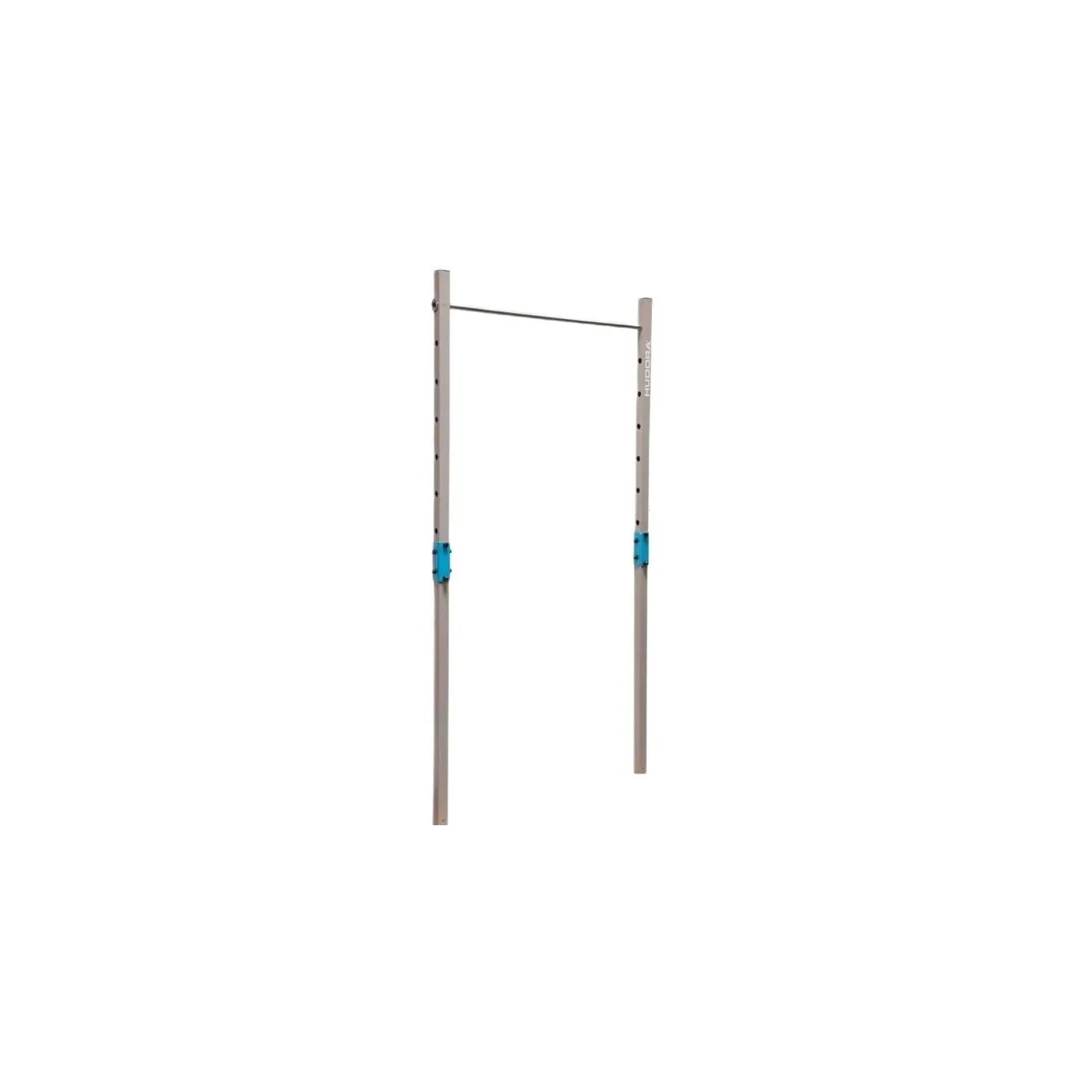 Konstrukcja drążka oparta jest na solidnych stalowych profilach o wymiarach 50x50 mm, co zapewnia stabilność oraz bezpieczeństwo podczas użytkowania. Wysoka jakość wykonania to kolejna cecha charakterystyczna drążka, wykonany z stali nierdzewnej, charakteryzuje się odpornością na różne warunki atmosferyczne. Jest gładki i bezpieczny, co czyni go idealnym do użytku przez dzieci. Średnica rury, wynosząca 25 mm, jest dostosowana do małych rączek. Przeznaczony jest do stałego montażu na zewnątrz.