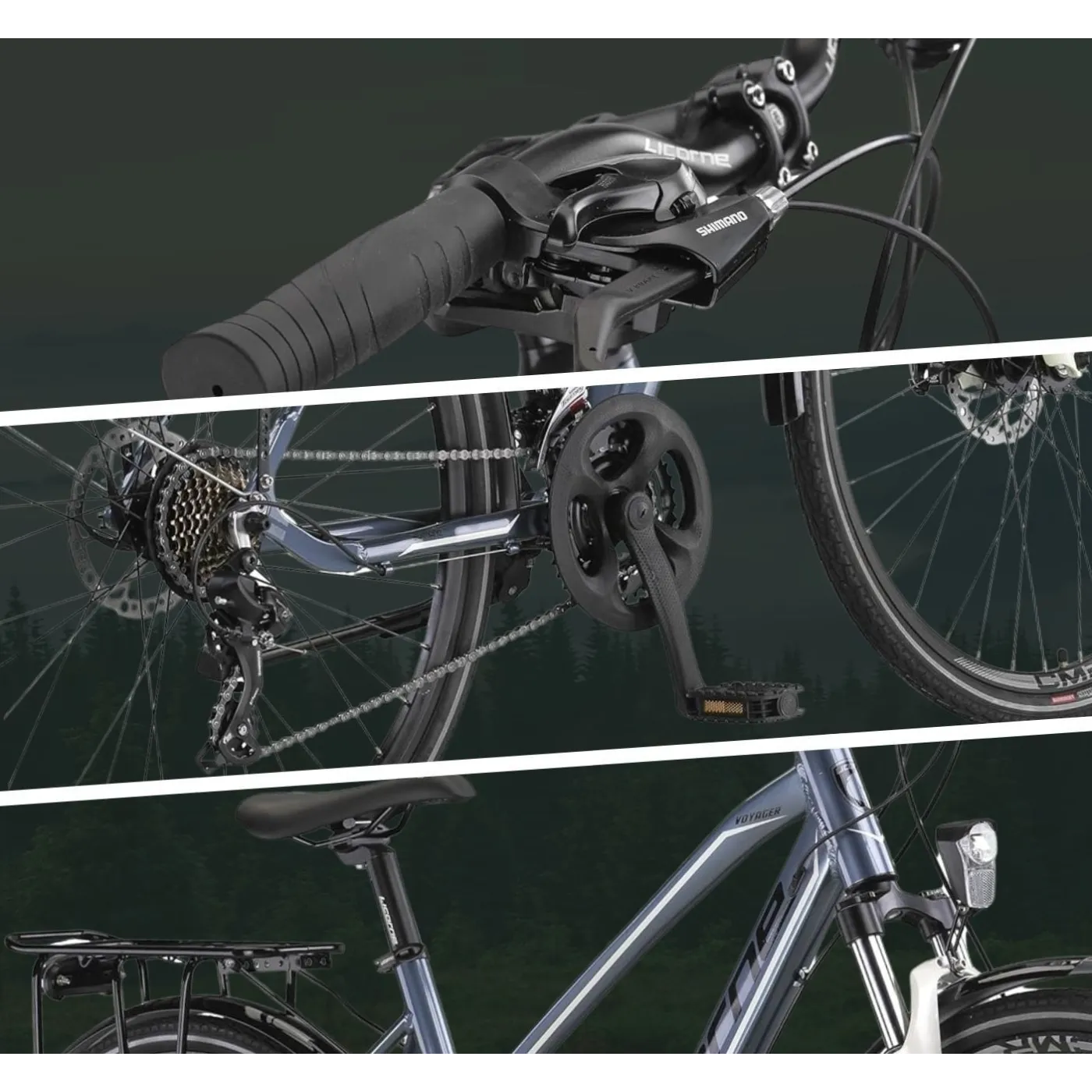 💎 Licorne Voyager to idealna propozycja dla osób, które lubią długie wycieczki po różnych rodzajach terenu. Rama wykonana z aluminium zapewnia lekkość oraz wytrzymałość roweru, co pozwala na komfortową jazdę przez wiele godzin. Dodatkowo, hamulce tarczowe gwarantują skuteczne i bezpieczne zatrzymywanie nawet w trudnych warunkach pogodowych.