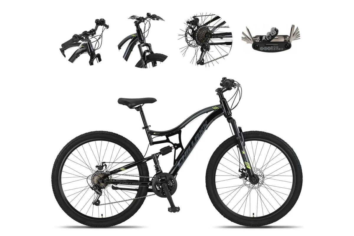 💎 Chillaxx Falcon wyposażony jest w solidną ramę stalową, która zapewnia stabilność i wytrzymałość na trudnych trasach górskich. Dzięki hamulcom tarczowym rower zapewnia skuteczne i pewne zatrzymywanie na stromych zboczach oraz w trudnych warunkach terenowych.