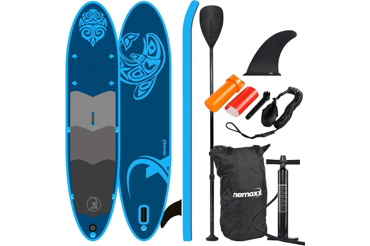 Deska SUP marki NEMAXX jest wykonana z niezwykle wytrzymałej konstrukcji typu dropstitch z PVC, która zapewnia maksymalną trwałość. Dzięki szczególnie solidnemu wykonaniu osiąga idealną równowagę między wysoką sztywnością oraz bezpieczną pływalnością i pierwszorzędną obsługą. Wyposażona jest w najnowszą technologię desek SUP co sprawia, że jest bardzo zwinna, szybka, stabilna oraz zapewnia bezpieczeństwo na kursie, a wszystko to dzięki ultralekkiej wadze. Posiada ona antypoślizgową powłokę typu EVA która zapewnia bezpieczną postawę i komfort stopy. Waga deski zapewnia szybsze przyspieszenie, łatwe skręcanie.