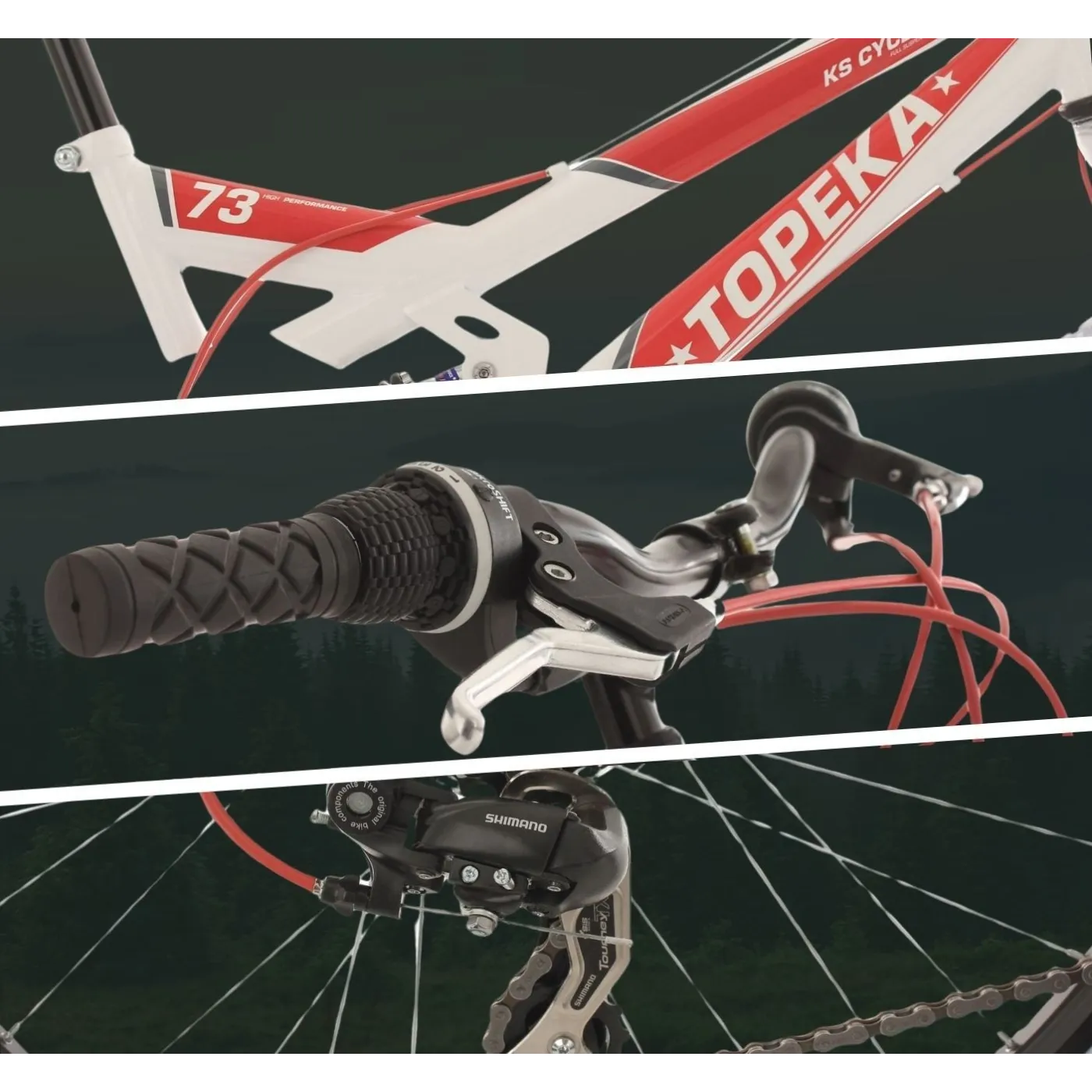 💎 Topeka został oparty na solidnej, stalowej ramie, która zapewnia wytrzymałość i stabilność. Wyposażony jest w hamulce tarczowe, które zapewniają skuteczne hamowanie nawet w ekstremalnych warunkach.