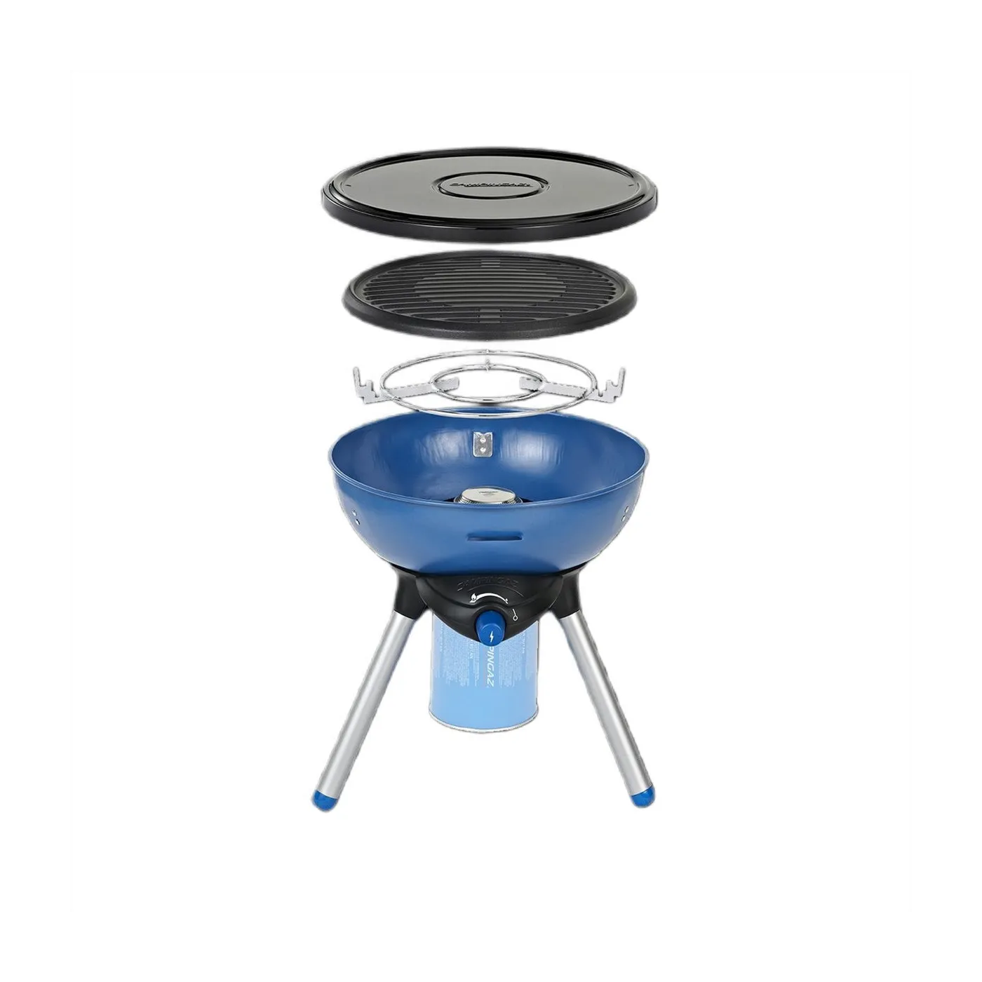 Campingaz Party 200 CV - idealny do grillowania w drodze! Jego optymalne rozmiary sprawiają, że będzie dobrym rozwiązaniem dla wszystkich, którzy poszukują sprzętu, którego rozmiary umożliwiają sprawne, szybkie przenoszenie i przewożenie. Grill ten to doskonały wybór na wyjazdy ze znajomymi lub rodzinne kempingi. Przygotuj smakowite potrawy w dowolnym miejscu. Wbudowane pokrętło pozwala na precyzyjną regulację przepływu gazu, a tym samym mocy ognia. Po zdjęciu płyty grillowej zyskujesz dodatkową funkcję - może być używany jako kuchenka!