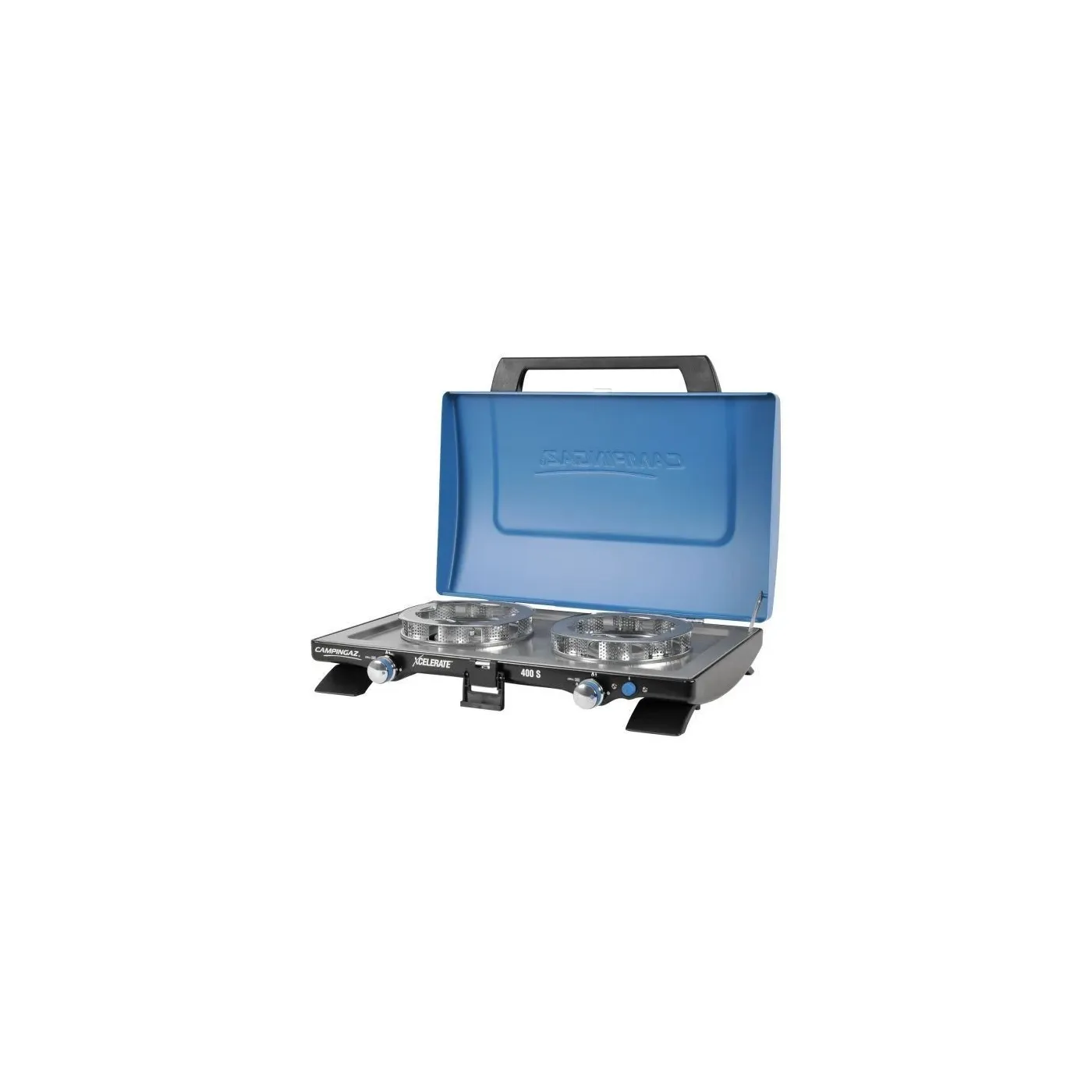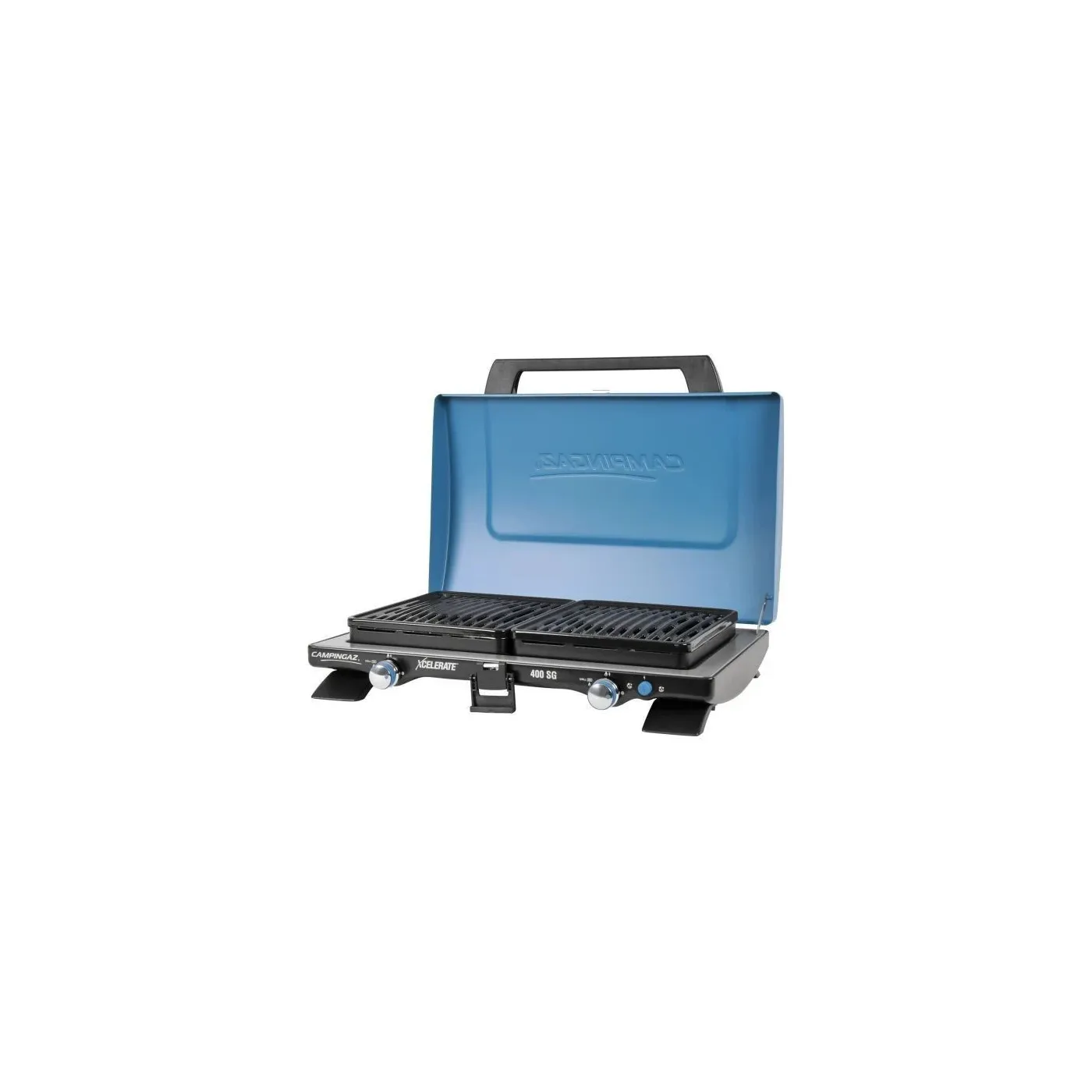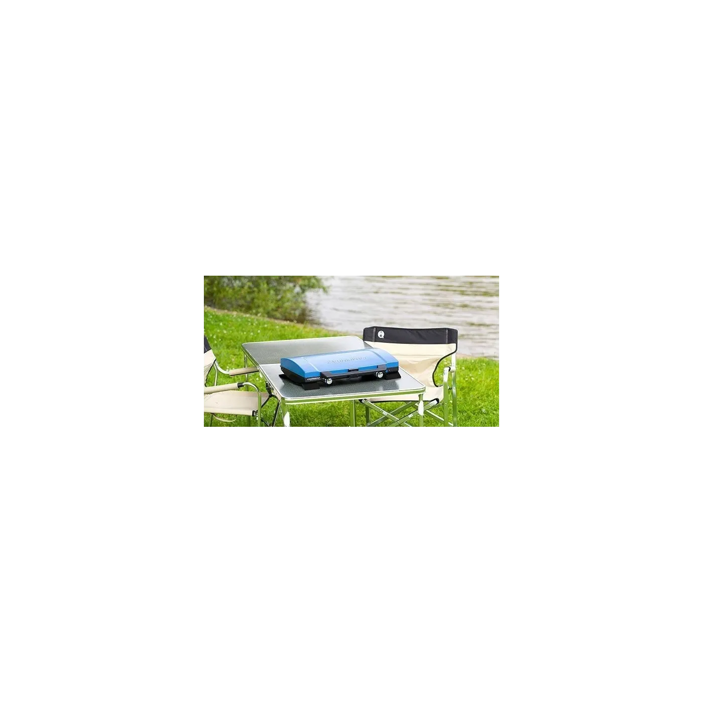 Piec 2-palnikowy Campingaz 400 S z solidną pokrywą ze stali lakierowanej jest łatwy w transporcie i użytkowaniu. Każdy z dwóch palników gazowych o szerokich biegach ma moc 2,2 kW. Ułatwia to przygotowanie dwóch rzeczy jednocześnie. Dwie wyjmowane płyty grillowe z miską na wodę umożliwiają jednoczesne gotowanie i grillowanie. Płomień gazu jest regulowany za pomocą dwóch pokręteł obrotowych. Dzięki innowacyjnej technologii palników Xcelerate, czas gotowania na wietrze jest znacznie skrócony w porównaniu z tradycyjnymi systemami. Stabilne podpory patelni z systemem WindBlock zwiększają również ochronę przed wiatrem. Wsporniki można łatwo zdjąć do czyszczenia.