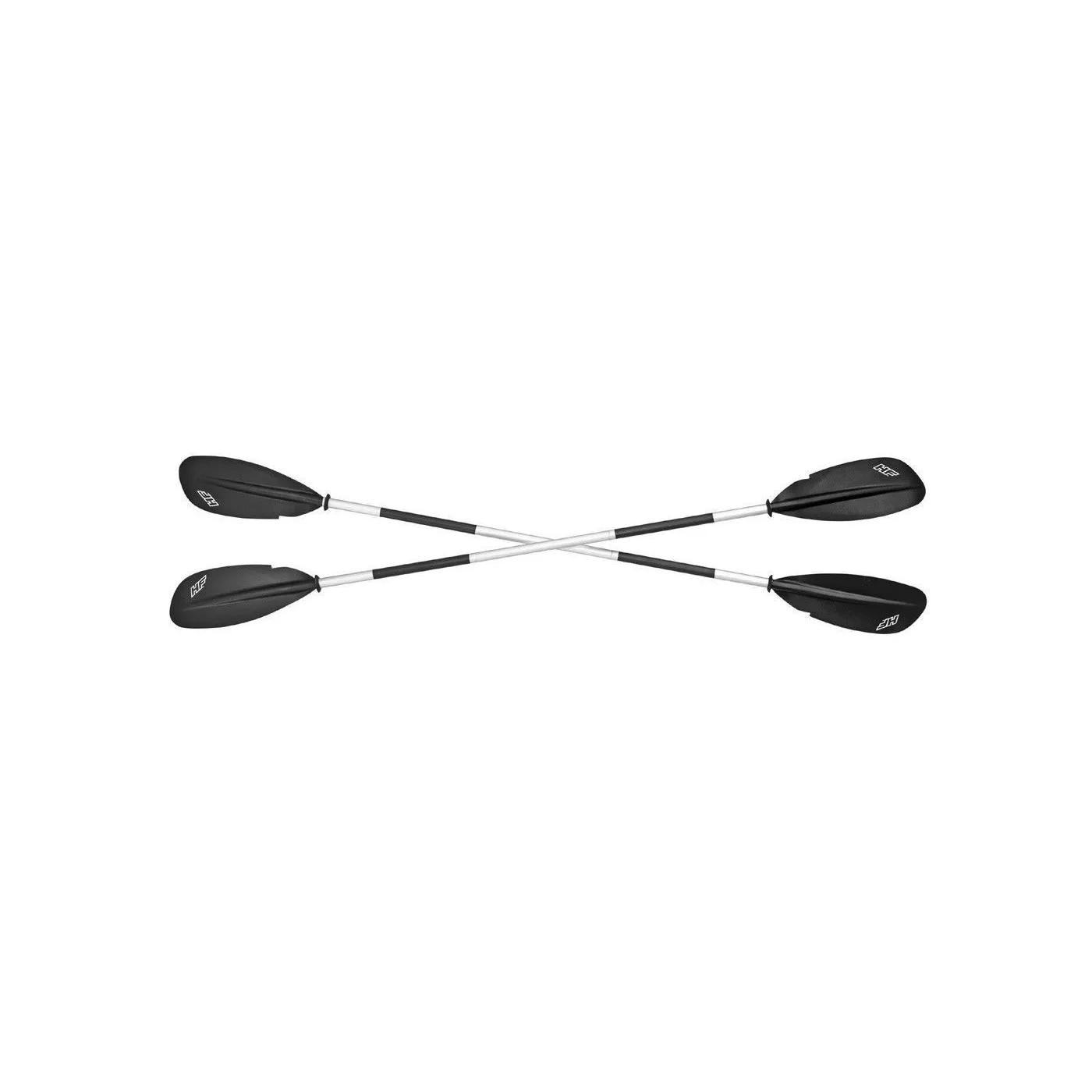 Przychodzi w zestawie z wieloma praktycznymi akcesoriami. W skład zestawu wchodzą dwa aluminiowe wiosła o długości 218 cm, które zapewniają płynne manewrowanie na wodzie. Kadłub pokryty jest specjalną nylonową powłoką, odporną na szkodliwe działanie promieni słonecznych, oleju oraz wody morskiej, co sprawia, że produkt jest niezwykle trwały.