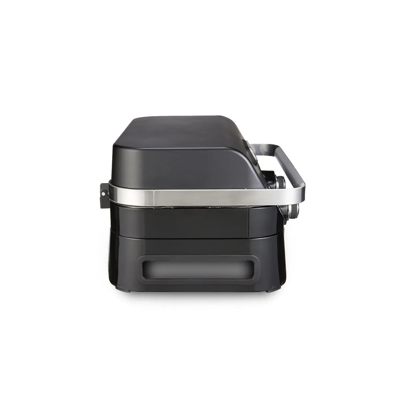 Wbudowany termometr pozwala na stałą kontrolę temperatury wewnątrz urządzenia. Dzięki temu zapomnisz o przypalonym jedzeniu, a każdy Twój posiłek będzie perfekcyjnie przygotowany. Grill może osiągnąć temperaturę do 300 stopni, co daje możliwość pieczenia potraw jak w tradycyjnym piekarniku. Wygodny uchwyt umożliwia swobodne obracanie oraz kontrolowanie grillowanych smakołyków.