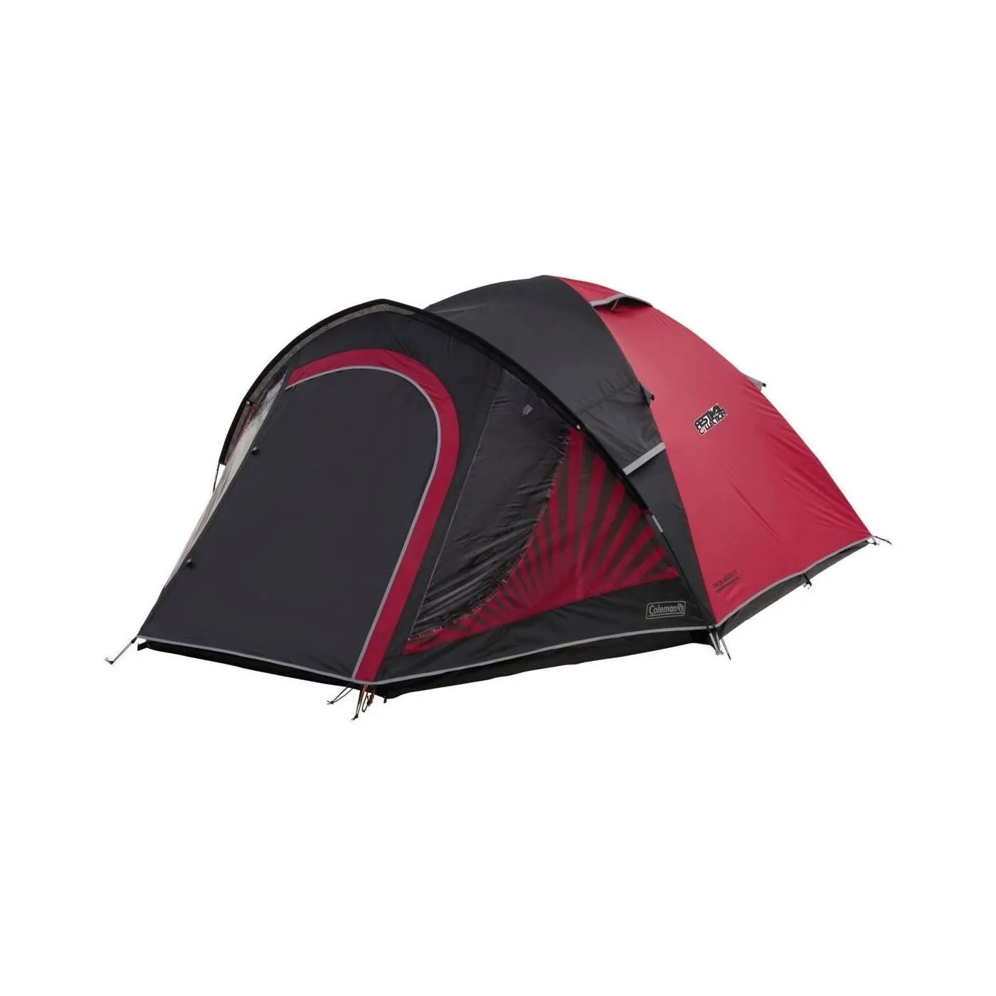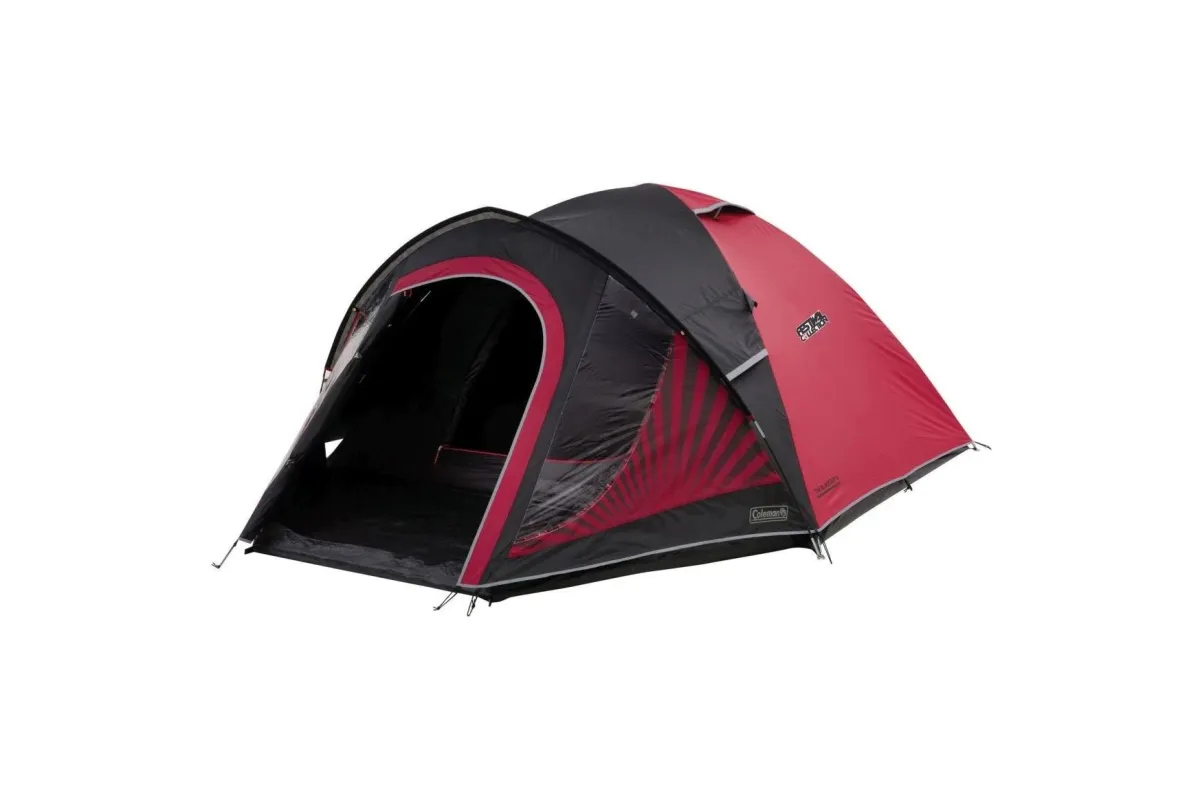 Namiot Coleman BlackOut 3 to wysokiej jakości 3-osobowy namiot turystyczny z przedsionkiem i opatentowaną technologią zaciemnienia BlackOut Bedroom®, która filtruje 99% światła dziennego, zapewniając lepszy nocny odpoczynek o każdej porze dnia. Dwie skrzyżowane belki tworzą sypialnię, a trzecia belka łamana do przodu tworzy przestronny korytarz z podniesioną podłogą. Klejone szwy z swoją odpornością wynoszącą 4500mm gwarantują, że żaden deszcz was nie zaskoczy. Trwałe, mocne, a jednocześnie lekkie pręty są oznaczone kolorami, aby jeszcze bardziej ułatwić konstrukcję. Namiot posiada moskitierę która idealnie chroni przed owadami,a także haczyk do zawieszenia światła który sprawi, że poczujesz się jak w domu. Klapy wentylacyjne zapewniają dopływ świeżego powietrza.