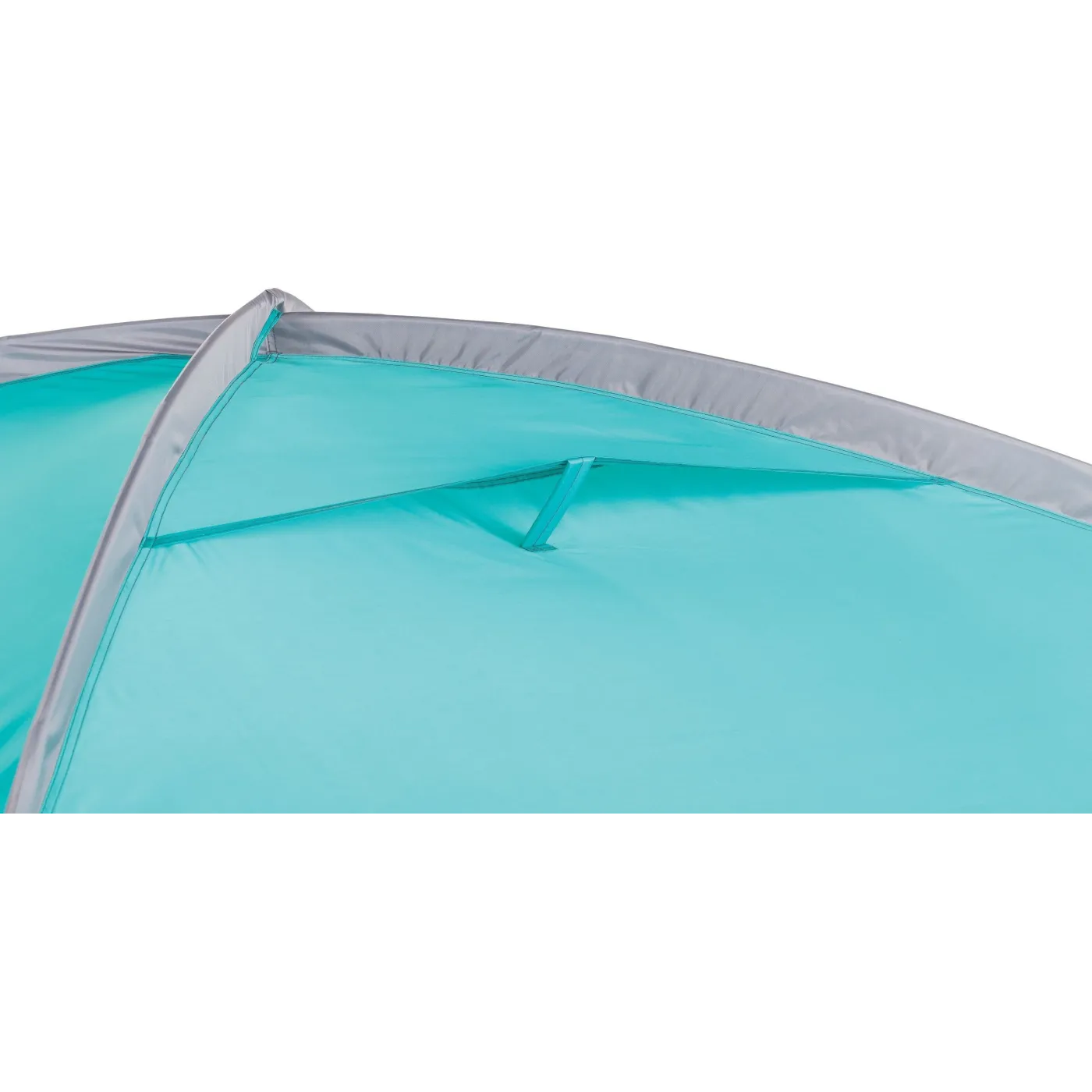 Namiot wyposażono w cztery przymocowane na stałe ścianki ekranowe, które można schować do dołączonych kieszeni, gdy nie są potrzebne. Dodatkowo, jego struktura zawiera dwie ściany zacieniające, które można łatwo przesuwać i zdejmować, co zapewnia wygodną ochronę przed słońcem padającym pod niskim kątem. Takie rozwiązanie sprawia, że namiot doskonale sprawdza się podczas rodzinnych wypadów na świeżym powietrzu oraz różnorodnych wydarzeń plenerowych.