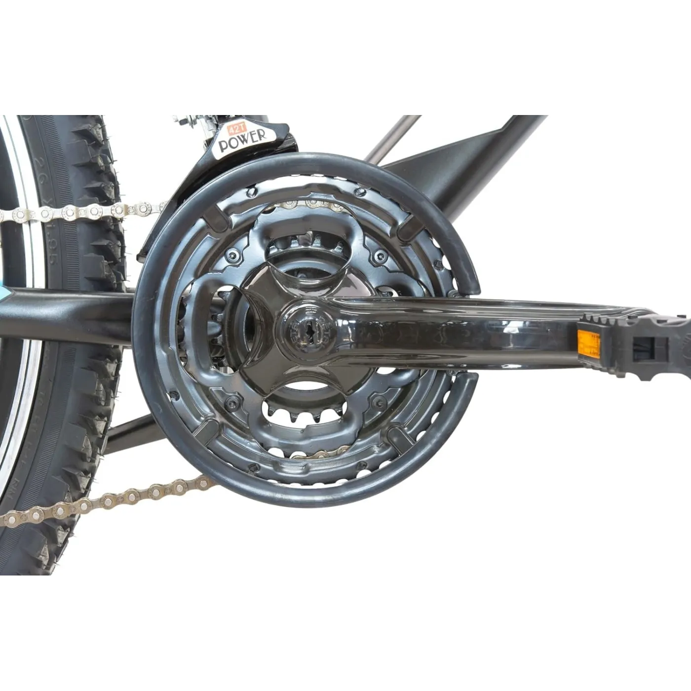 ✔️ Opony o wymiarach 26" x 1,95" zapewniają odpowiednią trakcję na każdym rodzaju nawierzchni, a amortyzowany widelec absorbuje wstrząsy i nierówności terenu, co przekłada się na większy komfort jazdy. Dzięki odblaskom widoczność rowerzysty jest zwiększona, co zapewnia bezpieczeństwo zarówno w dzień, jak i w nocy.