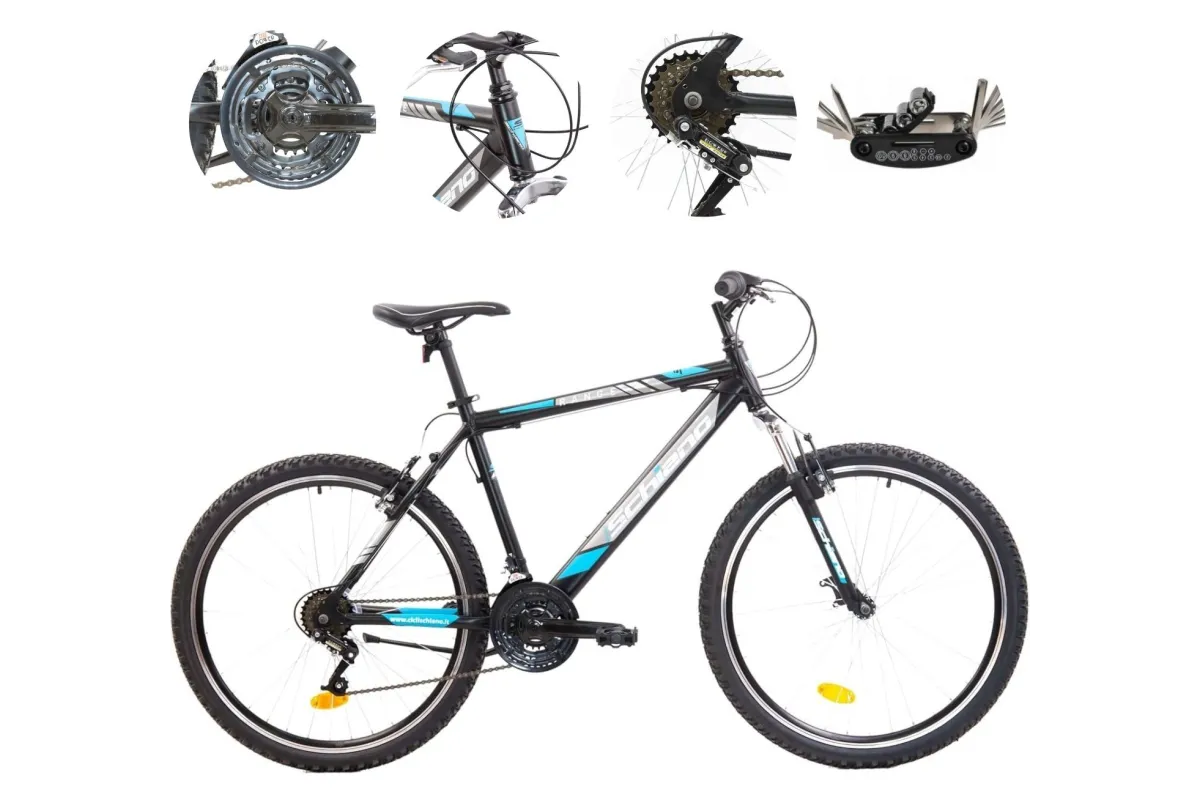 ✔️ Opony o wymiarach 26" x 1,95" zapewniają odpowiednią trakcję na każdym rodzaju nawierzchni, a amortyzowany widelec absorbuje wstrząsy i nierówności terenu, co przekłada się na większy komfort jazdy. Dzięki odblaskom widoczność rowerzysty jest zwiększona, co zapewnia bezpieczeństwo zarówno w dzień, jak i w nocy.