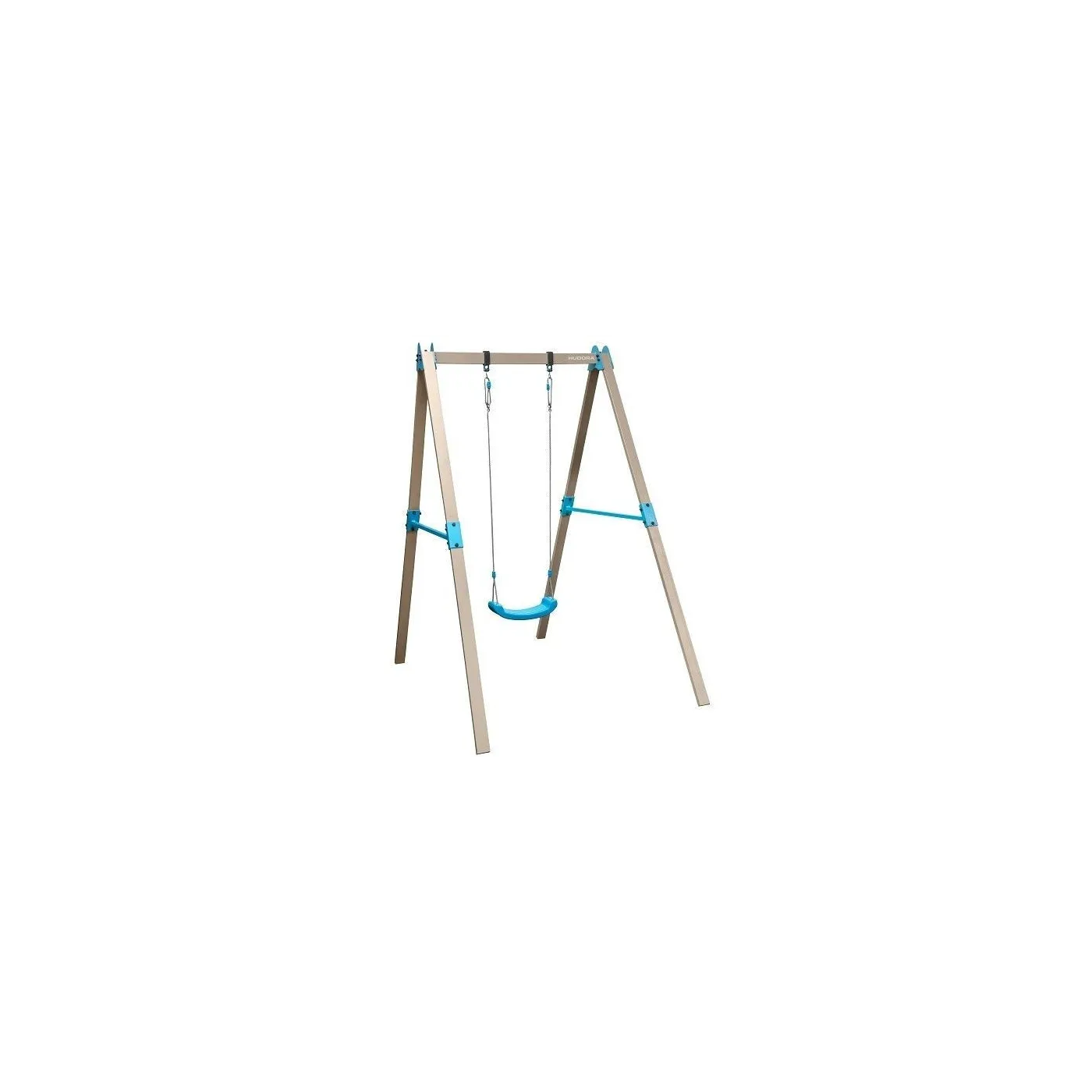 Dodatkową zaletą jest elastyczny system zawieszenia, który pozwala na dostosowanie wysokości siedziska i umożliwia jego wymianę. Jest kompatybilna z różnymi rodzajami siedzisk, w tym także od innych marek, co sprawia, że można ją modyfikować w zależności od własnych potrzeb. Górna belka o długości 117 cm umożliwia umieszczanie zacisków w szerokim zakresie od 43 do 100 cm, co dodaje jeszcze większej elastyczności i możliwości personalizacji korzystania z huśtawki.