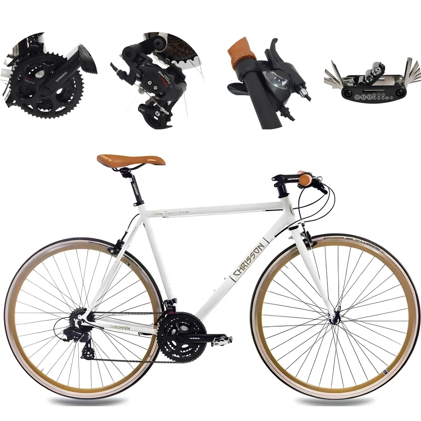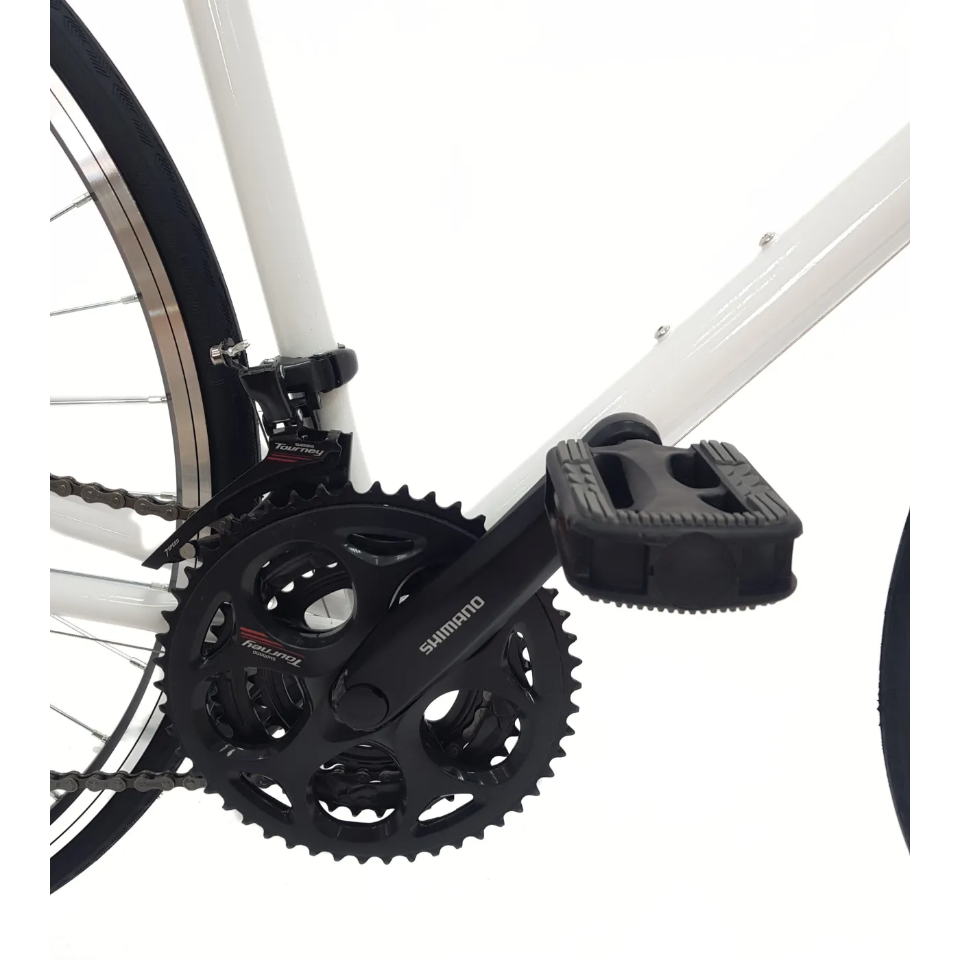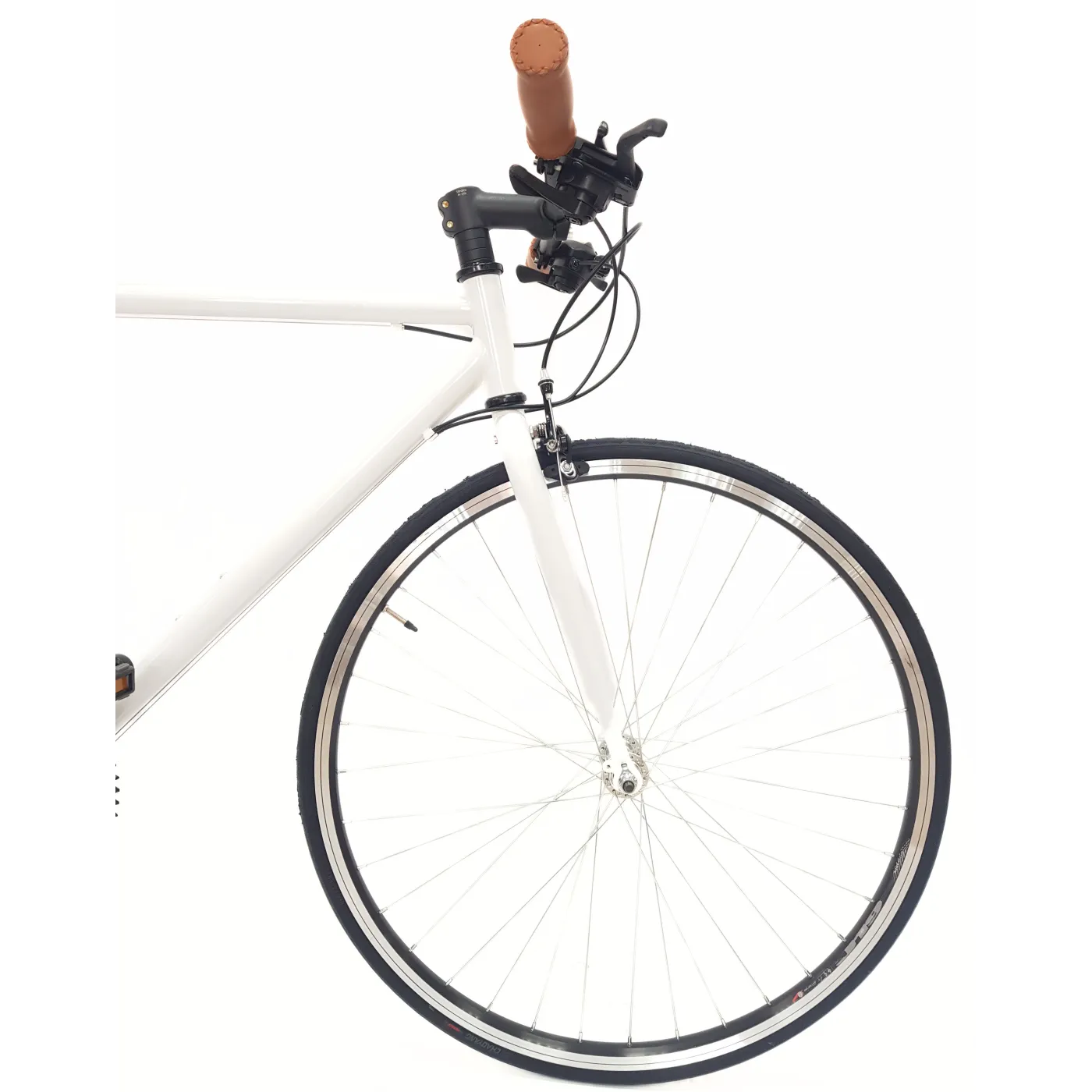 ⚙️ 21-biegowa przerzutka Shimano pozwala na płynne zmiany przełożeń, dzięki czemu można odpowiednio dostosować rower do warunków terenowych i własnych preferencji. Manetki cynglowe są ergonomiczne i wygodne w obsłudze, co ułatwia korzystanie z różnych biegów. Opony 700x25C zapewniają odpowiednią przyczepność i komfort jazdy, nawet po nierównych nawierzchniach.