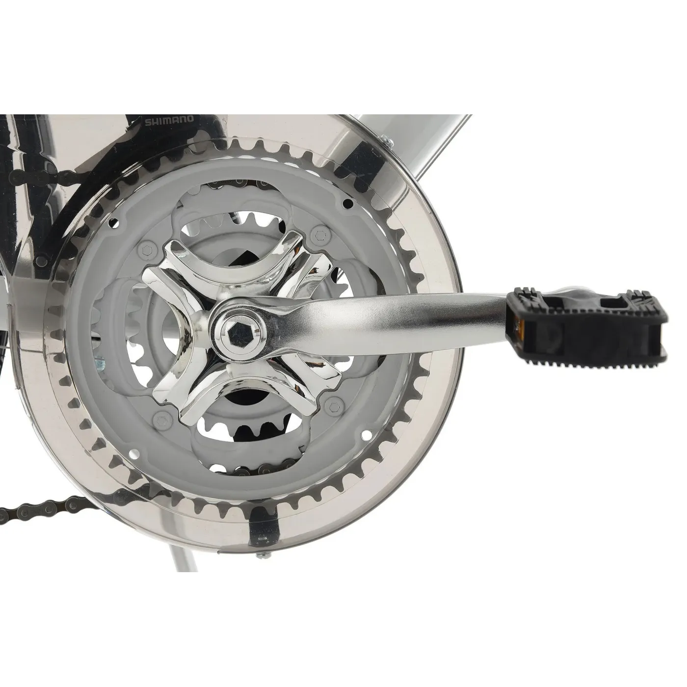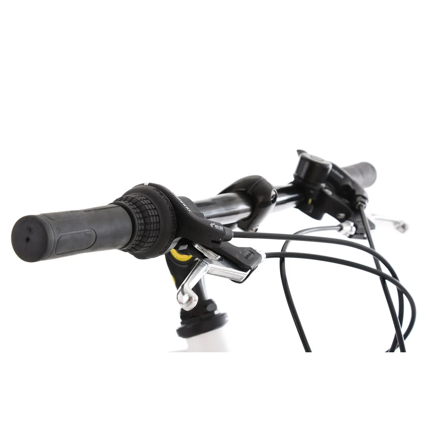 ✔️ Hamulce V-brake, w które wyposażono ten rower, gwarantują skuteczne i pewne zatrzymywanie się, co jest niezwykle istotne podczas jazdy po zróżnicowanym terenie. Dzięki 21-biegowej przerzutce Shimano oraz manetkom obrotowym Revoshift, zmiana przełożeń odbywa się płynnie i bezproblemowo, pozwalając ułatwić pokonywanie różnorodnych tras.