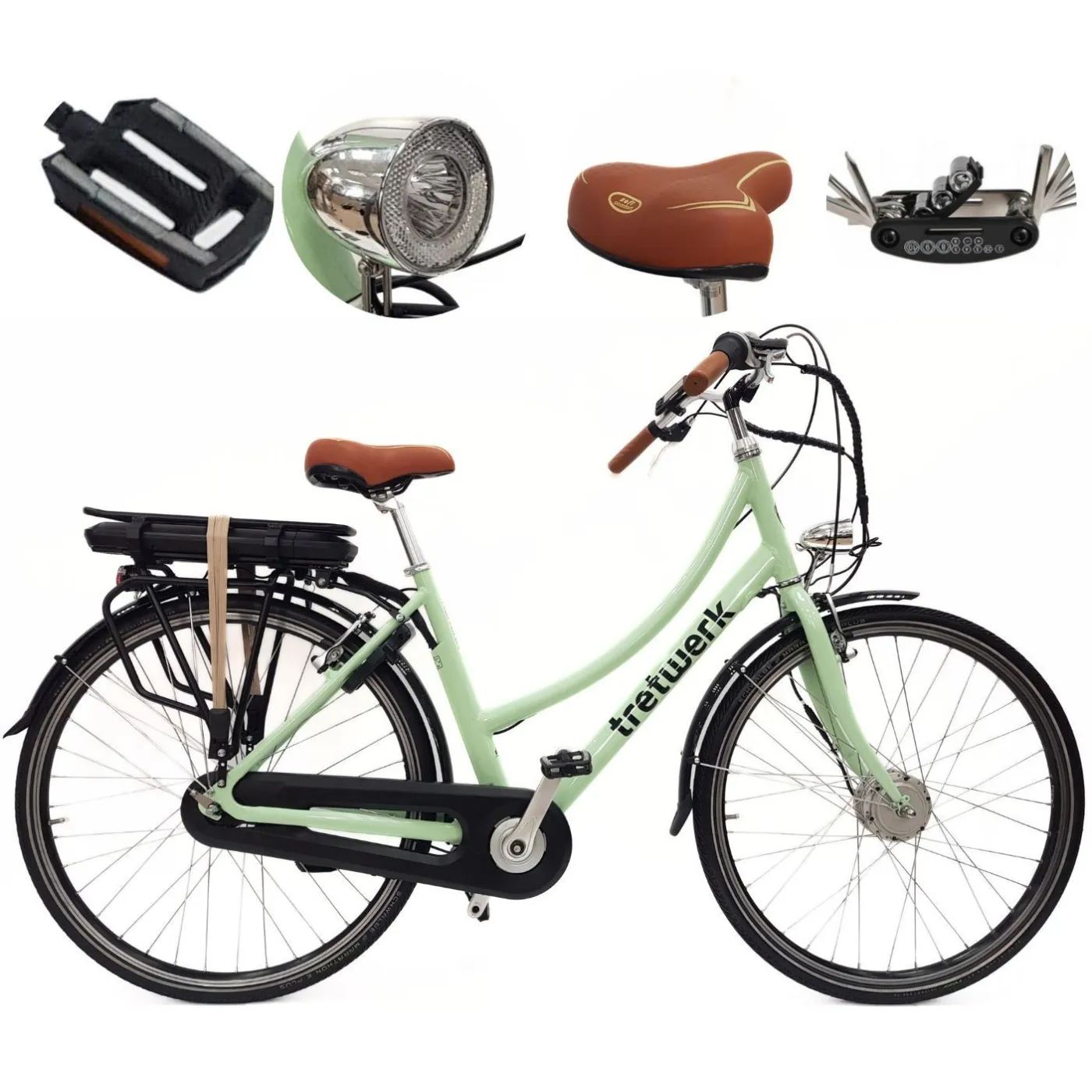 🛡 W trosce o Twoje bezpieczeństwo, Tretwerk Aurora posiada wysokiej jakości hamulce V-brake oraz torpedo, które zapewniają skuteczne zatrzymywanie się w każdych warunkach. Dodatkowo wyposażony jest w błotniki i oświetlenie, co sprawia, że jest idealnym towarzyszem zarówno na dzień jak i na noc.