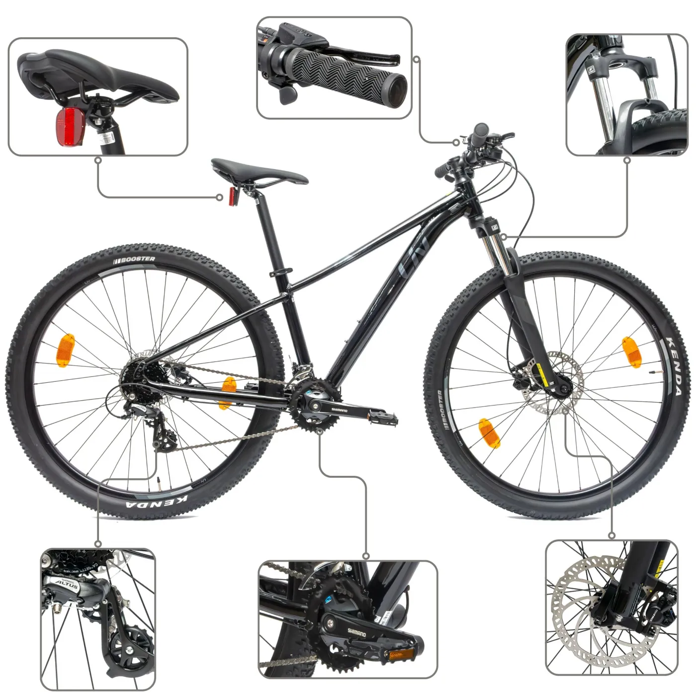 ⚙️ Zastosowanie hamulców tarczowych hydraulicznych zapewnia nie tylko skuteczne zatrzymywanie, ale również pewność w trudnych warunkach. Rower wyposażony jest w system przerzutek Shimano, co umożliwia płynne przełączanie biegów i dostosowanie się do różnorodnych tras. 16 biegów to gwarancja elastyczności podczas jazdy.