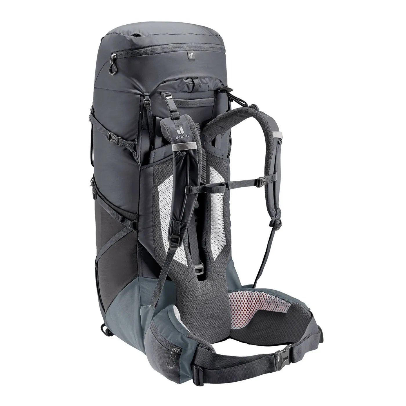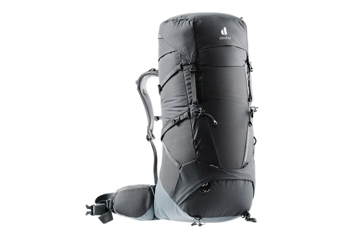 Plecak trekkingowy Deuter Aircontact Core 50+10 ma anatomicznie profilowane pasy ramienne ActiveFit, wykonane z pianki pokrytej miłą w dotyku siateczką. Nad ramionami znajdują się regulowane pasy stabilizujące. Model niemieckiej marki ma miękko wyściełany szeroki pas biodrowy. Dzięki temu, że wykonano go w technologii VariFlex ECL, będzie podążać za każdym Twoim ruchem, zapewniając na każdym kroku odpowiedni rozkład ciężaru. Pas biodrowy oraz konstrukcja plecak na odcinku lędźwiowym zapewniają odpowiedni rozkład przenoszonego ciężaru, przenosząc go w znacznej części na miednicę. Ten model ma dodatkowo regulowany pas piersiowy, który zadba o właściwą stabilizację.