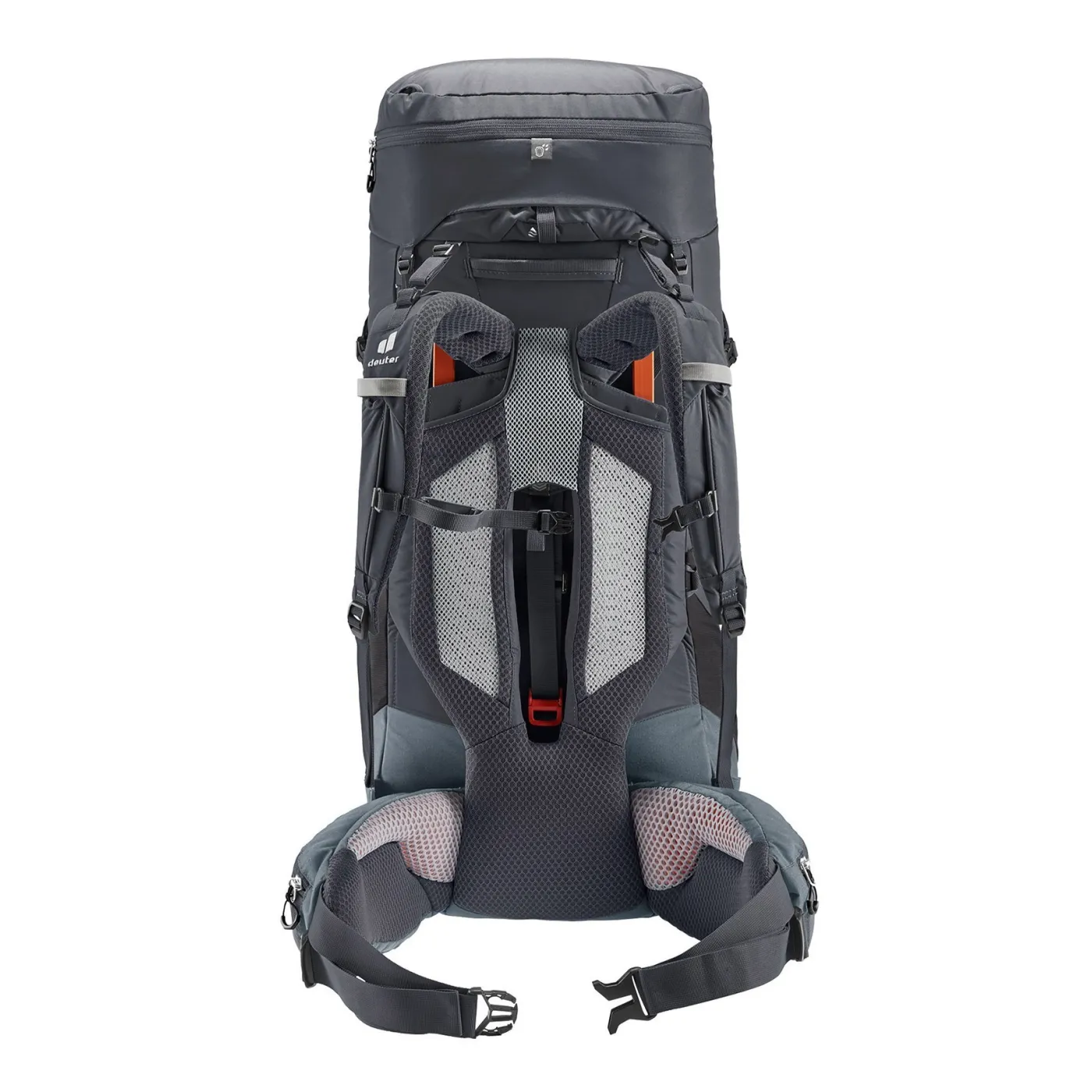 Plecak trekkingowy Deuter Aircontact Core 50+10 wyróżnia się zastosowanym w nim ulepszonym systemem nośnym Deuter Airocontact. Rozwiązanie Deuter Aircontact opiera się na wytrzymałej ramie ze stali w kształcie litery „Y”. Rama zapewnia dobry rozkład przenoszonego ciężaru, a także jego odpowiednią stabilizację. Model niemieckiej marki ma poduszki z pianki wyściełanej miękkim materiałem Air Spacer. Między nimi znajduje się szeroki kanał, co znacząco ograniczy ryzyko przegrzewania pleców podczas wędrówki. W tym plecaku trekkingowym Deuter masz możliwość płynnej zmiany położenia wysokości pasów ramiennych dzięki rozwiązaniu VariSlide. Pozwoli to dopasować model do Twojego wzrostu.