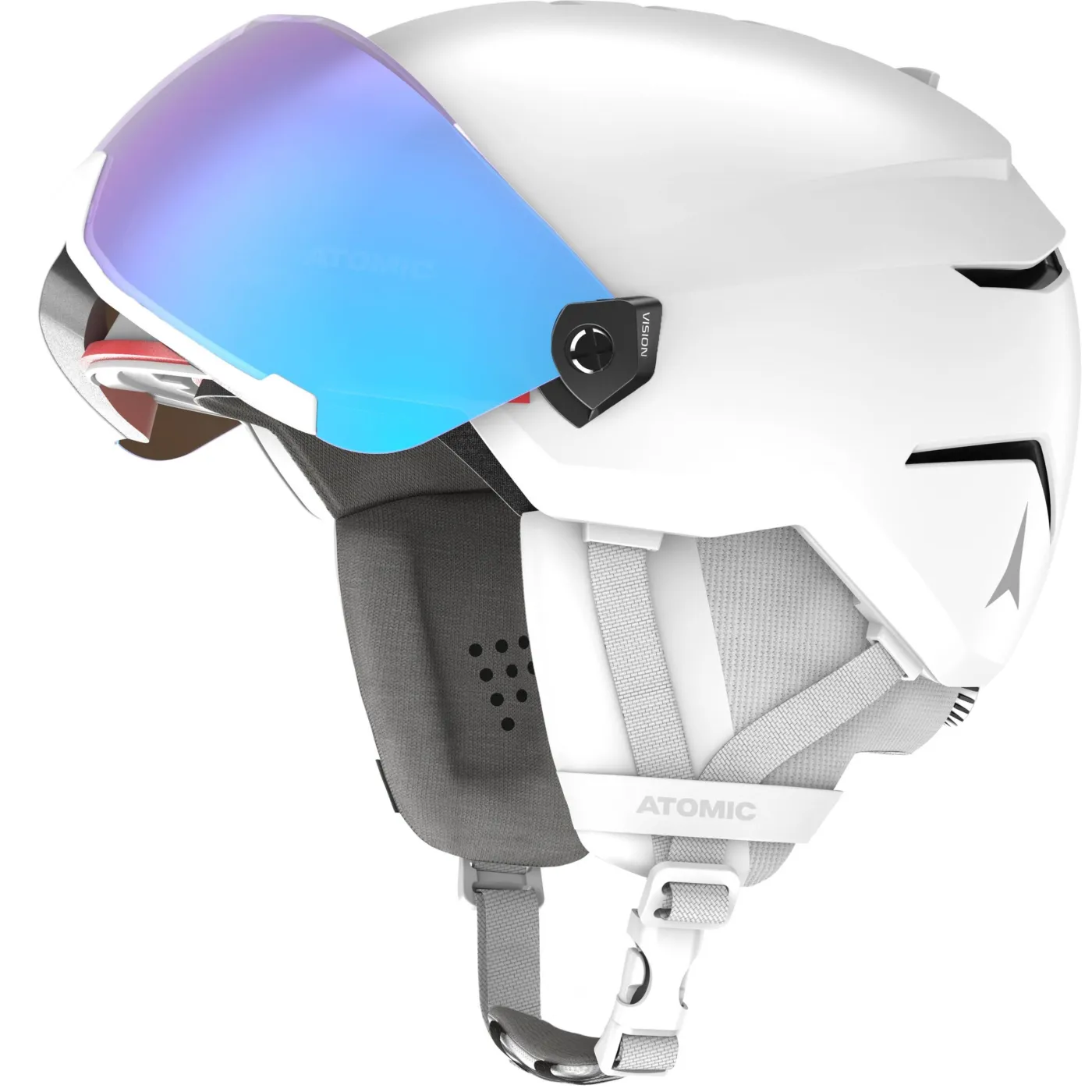 Atomic Savor Visor Stereo łączy w sobie dwa niezbędne elementy, kask i gogle - zgodnie z filozofią Savor, tak, aby jazda na nartach była łatwiejsza i przyjemniejsza. Kask jest zbudowany wokół Holo Core, który zapewnia najwyższą ochronę, będąc jednocześnie lekkim i przewiewnym. Regulowane ustawienie wizjera pozwala, w razie potrzeby, na noszenie okularów pod spodem. Technologia Stereo Lens z dziewięcioma warstwami lustrzanej powłoki zapewnia 100% przejrzystość i ochronę przed odblaskami oraz zmęczeniem podobnie jak najlepsze gogle. Podczas gdy system Live Fit natychmiast dostosowuje się do Twojej głowy, a system dopasowania 360° z regulacją wysokości zapewnia idealne dopasowanie przez cały dzień.