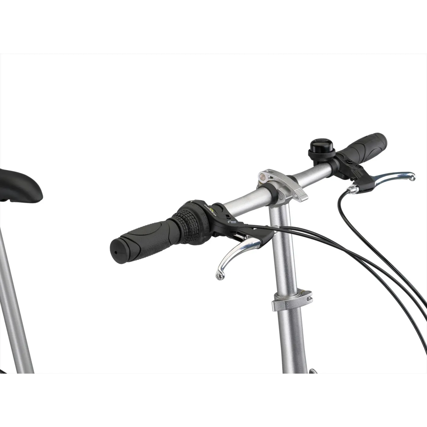 👉 Licorne Fold jest wyposażony w 6-biegowy napęd łańcuchowy, który zabierze Cię w dowolne miejsce w mieście. Z łatwością wybierasz biegi za pomocą manetki Shimano RevoShift z rękojeścią obrotową. Opony 20" x 1,75" o profilu ulicznym zapewniają dobre właściwości jezdne do użytku miejskiego.