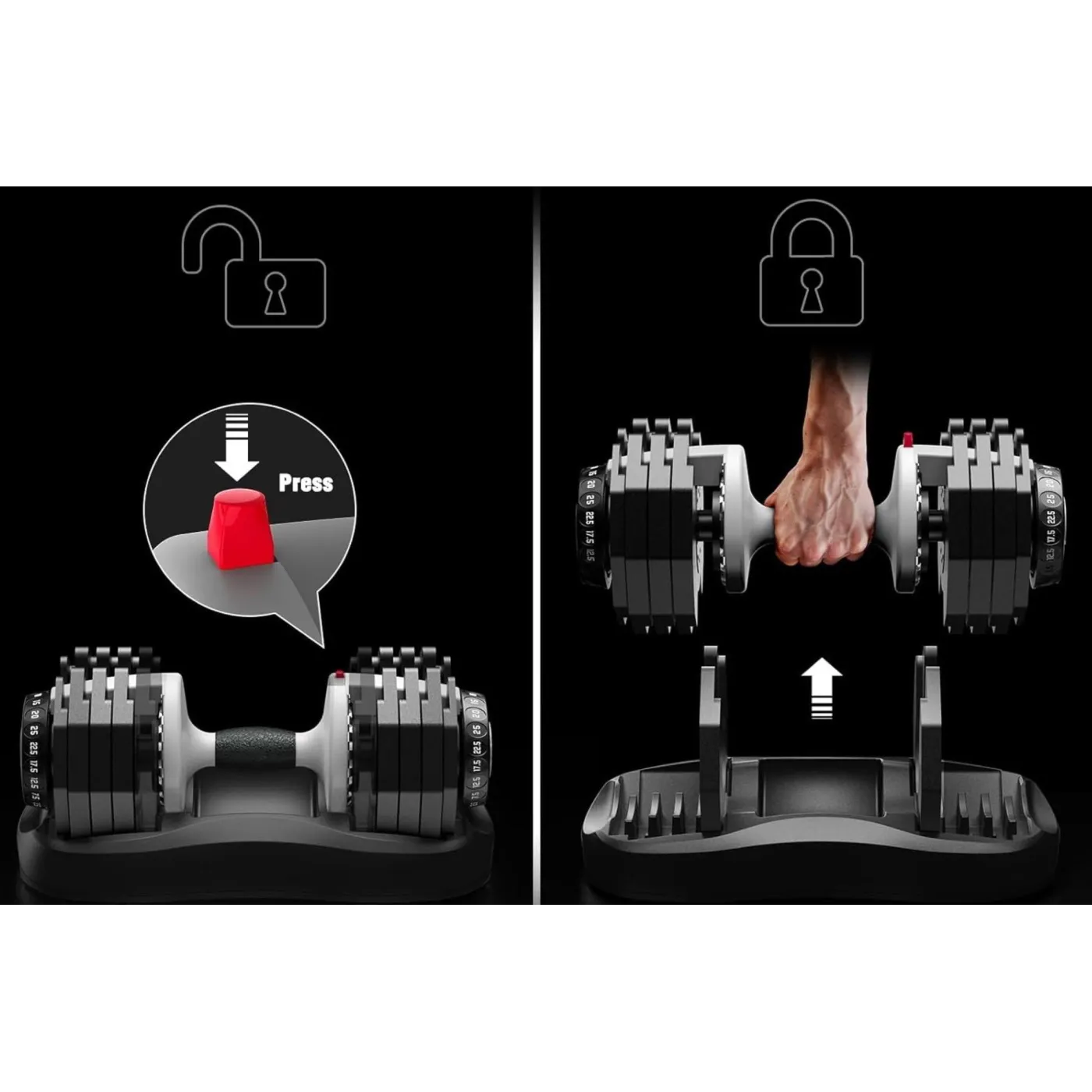 Ta regulowana hantla to doskonały wybór dla tych, którzy chcą skutecznie trenować w komfortowych warunkach własnego domu. Dzięki innowacyjnemu projektowi "wszystko w jednym", łączy w sobie funkcjonalność i wygodę, oferując możliwość dostosowania ciężaru do indywidualnych potrzeb. Niezależnie od tego, czy jesteś kobietą, czy mężczyzną, te ciężary będą idealnym dodatkiem do Twojej domowej siłowni.