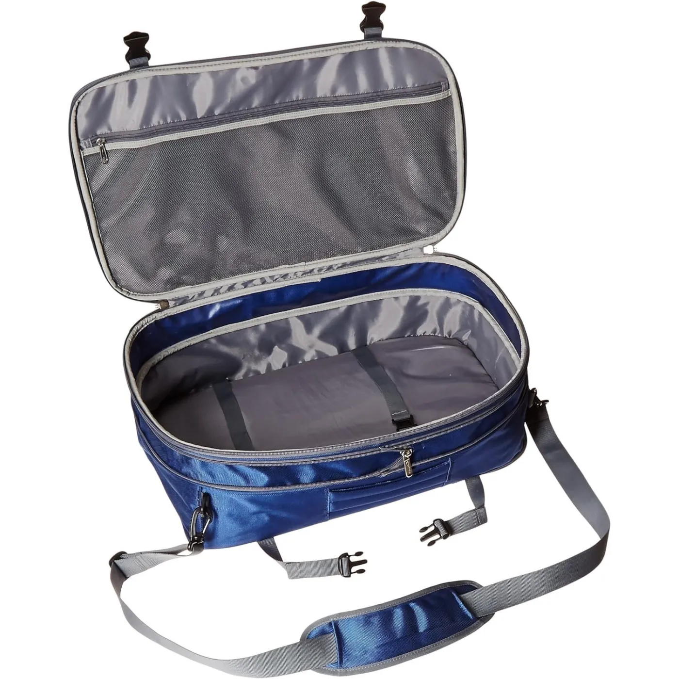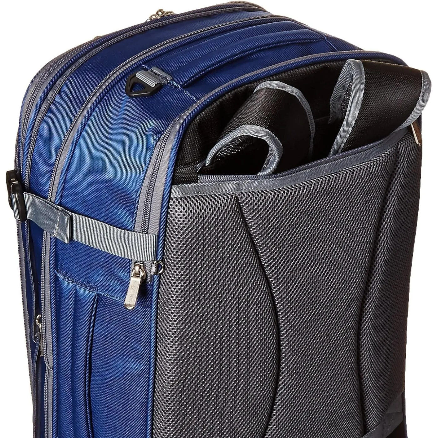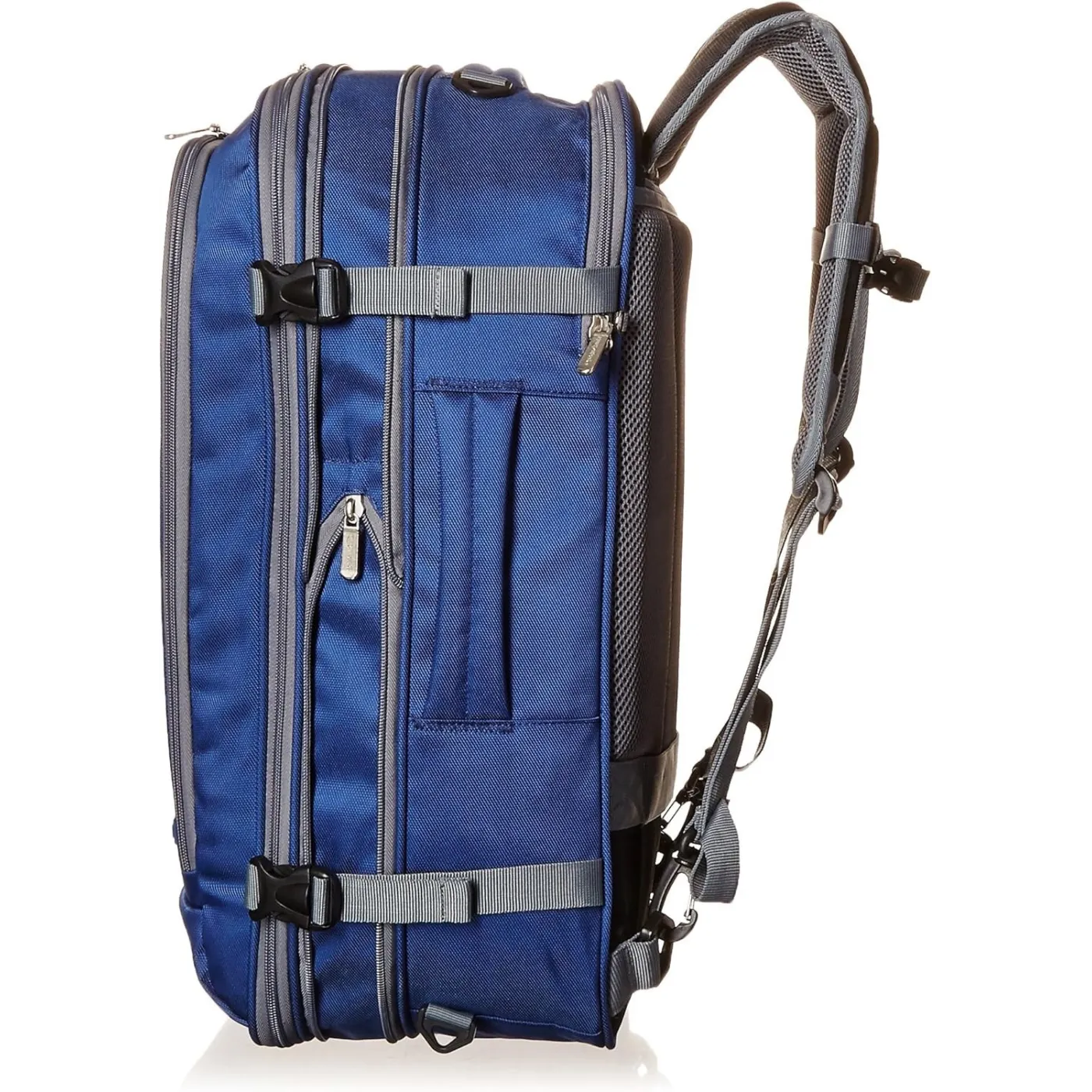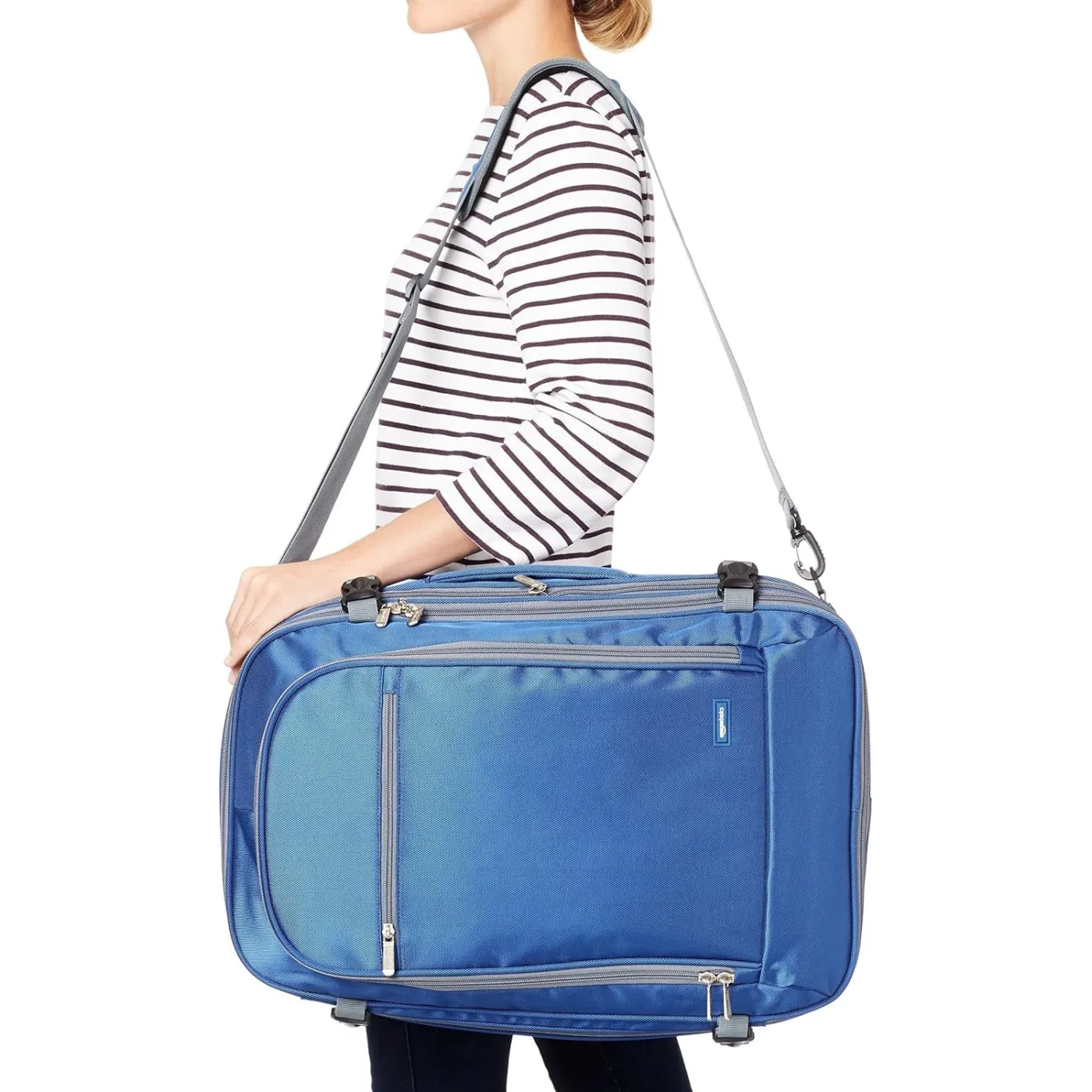 Plecak podróżny do bagażu podręcznego z wewnętrzną, zapinaną na zamek kieszenią na laptopa, niezwykle elastyczny i lekki oraz wykonany z wytrzymałego poliestru. Główna komora z siatką zapinana jest na suwak, posiada opcjonalną półką w połowie i wewnętrzne/zewnętrzne paskami kompresyjnymi. Przednia kieszeń i przednia kieszeń górna zapewniają łatwy dostęp do dokumentów i płynów podróżnych. Wyściełane paski na ramiona można łatwo odpiąć i schować w tylnej kieszeni zapinanej na zamek.