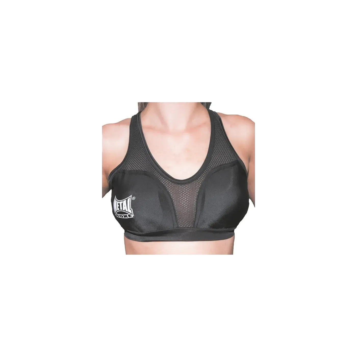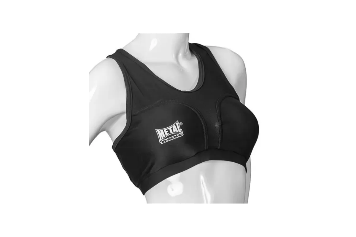 Ochraniacz klatki piersiowej Metal Boxe dla kobiet, wykonany z lekkiego poliestru, pozwala na uprawianie sportów walki z pełnym bezpieczeństwem! Zaprojektowany dla kobiet-sportowców, ten biustonosz sportowy ze sztywną skorupą zapewnia optymalną ochronę, bezpieczne dopasowanie i zwiększony komfort, idealny na intensywne sesje treningowe i zawody. Ćwicz swoje sporty walki z pewnością siebie dzięki biustonoszowi sportowemu Metal Boxe z muszlą. Jego innowacyjny design i wysokiej jakości materiały sprawiają, że jest to niezbędny wybór dla kobiet walczących, które chcą połączyć bezpieczeństwo, wygodę i wydajność.