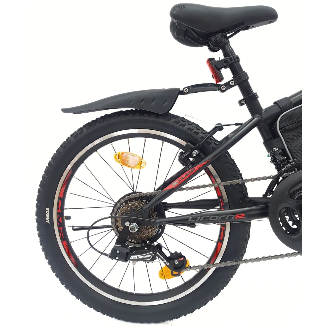 🔧 Wyposażony w hamulce szczękowe v-brake zarówno z przodu, jak i z tyłu, zapewnia bezpieczne i skuteczne hamowanie. Dzięki 18-biegowej przerzutce Shimano oraz manetce obrotowej Shimano RevoShift, młodzi kolarze mogą płynnie zmieniać biegi, dostosowując się do różnych terenów.