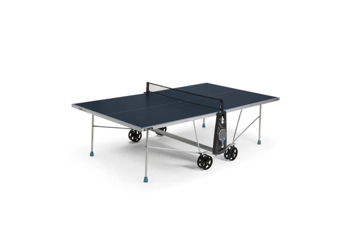 Stół tenisowy 100X marki Cornilleau to solidna jakość w niskiej cenie. Podstawowy model przeznaczonej do użytku zewnętrznego serii Sport jest idealny dla początkujących graczy. Dzięki niemu z radością rozpoczną swoją przygodę z tenisem stołowym. Stół jest odporny na różnorodne warunki atmosferyczne dlatego bez obaw możesz przechowywać go na zewnątrz.