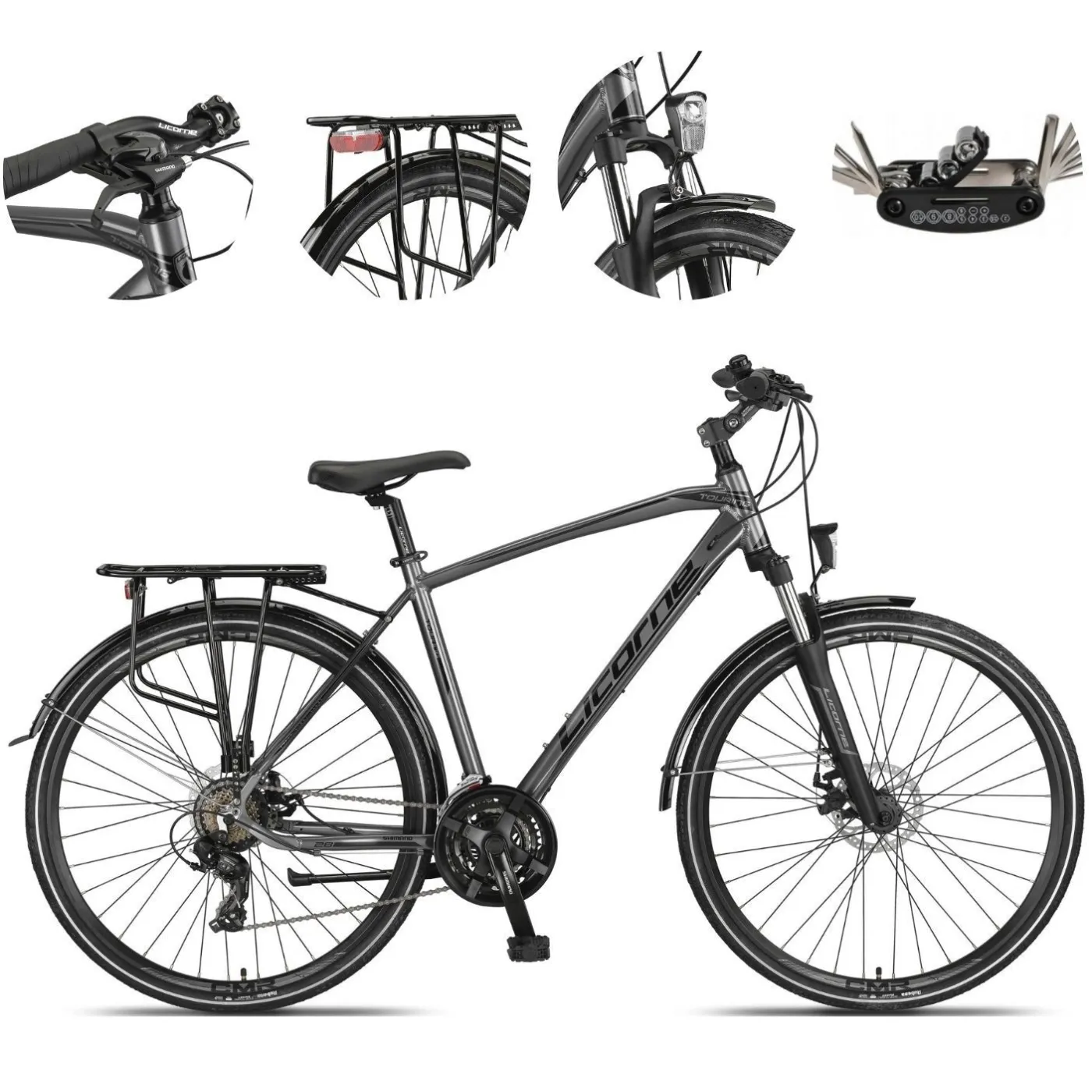 ✨ Dodatkowymi udogodnieniami, które oferuje Touring, są dzwonek, błotniki, bagażnik oraz światła, które sprawiają, że jazda jest jeszcze bardziej komfortowa i bezpieczna. Ten rower to idealna propozycja dla osób, które cenią sobie wszechstronność, trwałość i wygodę podczas codziennych i weekendowych wycieczek rowerowych.