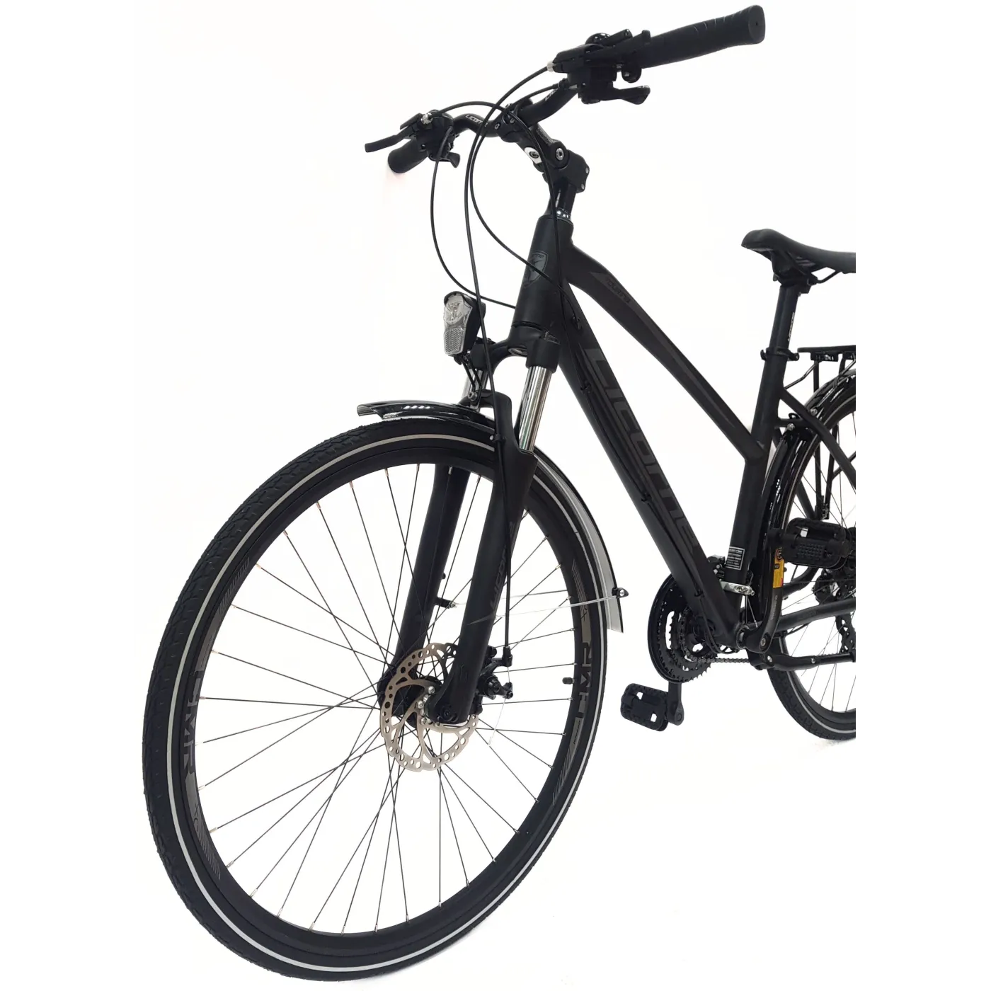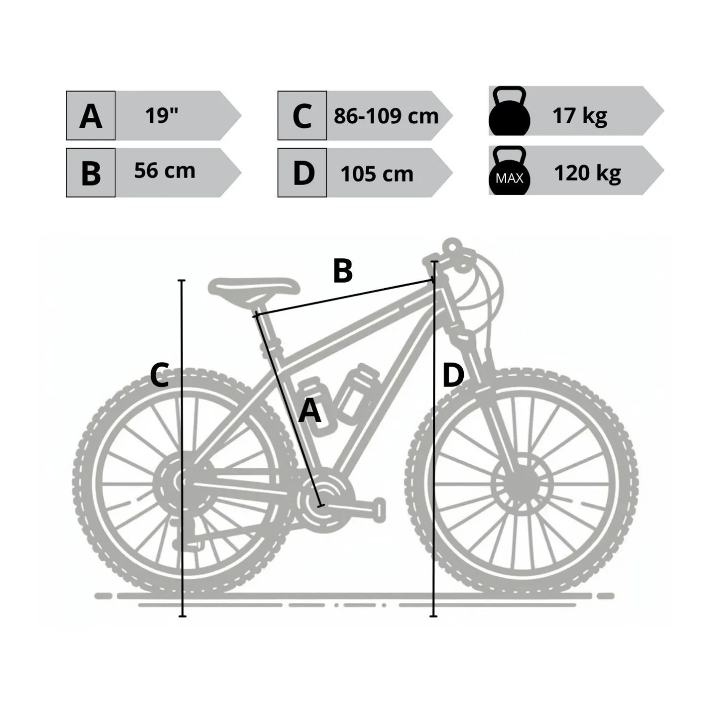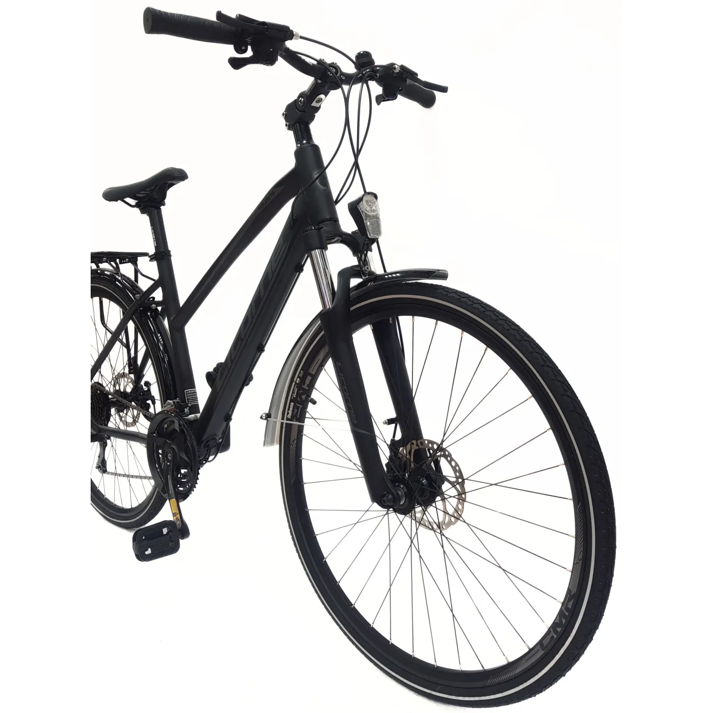 👉 Opony o rozmiarze 28" x 1,90" gwarantują stabilność i komfort jazdy zarówno po asfalcie, jak i po lekko zniszczonych nawierzchniach. Kolorystyka roweru w czerni z szarymi wstawkami nadaje mu eleganckiego i nowoczesnego wyglądu, który z pewnością przyciąga spojrzenia.