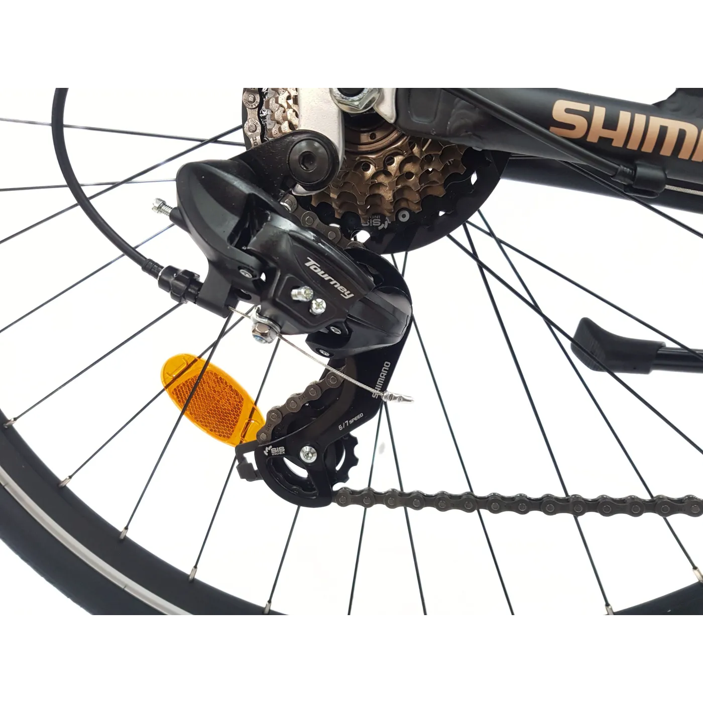 👌 21-biegowa przerzutka Shimano w połączeniu z manetkami obrotowymi Revoshift pozwalają na płynną zmianę przełożeń, co umożliwia dostosowanie roweru do każdej trasy. Duże koła o średnicy 28" z oponami 700x40c zapewniają stabilność i pewność jazdy nawet po nierównych nawierzchniach.