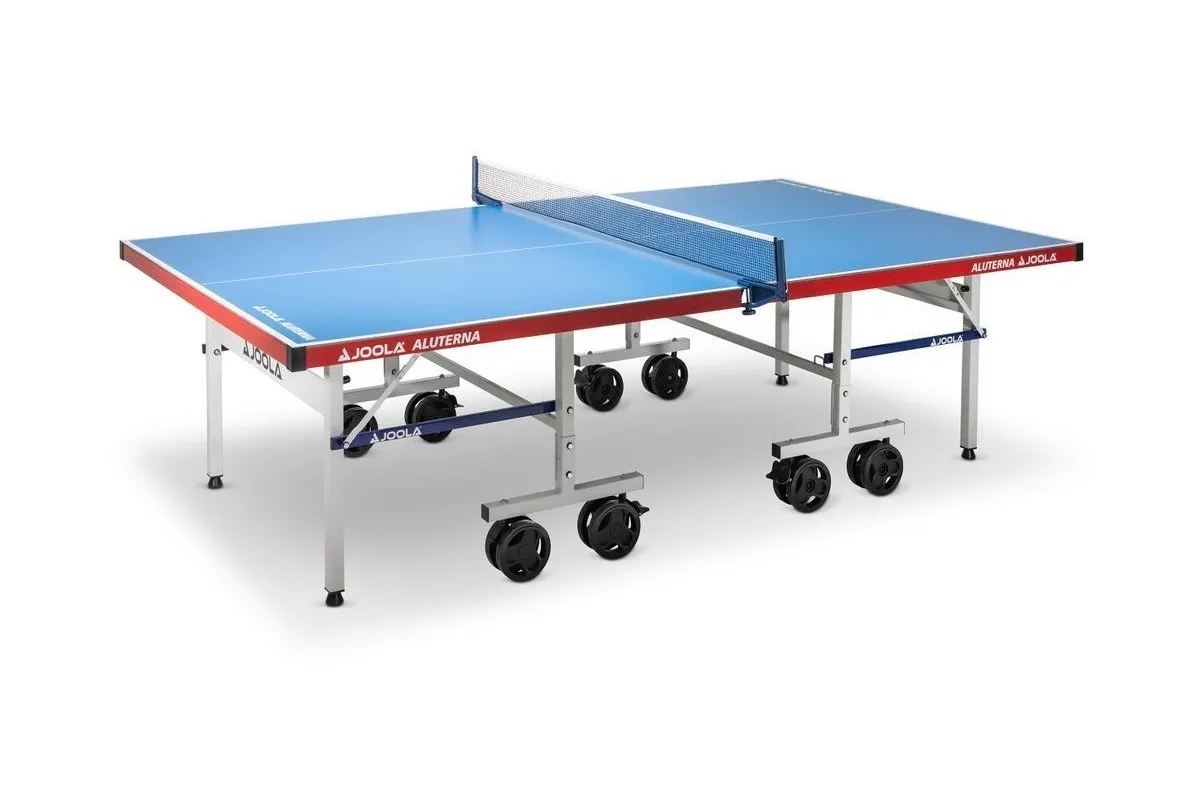 🏓 Joola Aluterna Outdoor to stół idealny do użytku na zewnątrz i rekreacyjnego grania. Wyróżnia się łatwym montażem, który można przeprowadzić w mniej niż 20 minut. Cechuje się lekką, ale solidną podstawą wykonaną z malowanego proszkowo metalu, co zapewnia wyjątkową stabilność, a jednocześnie wszechstronność użytkowania.