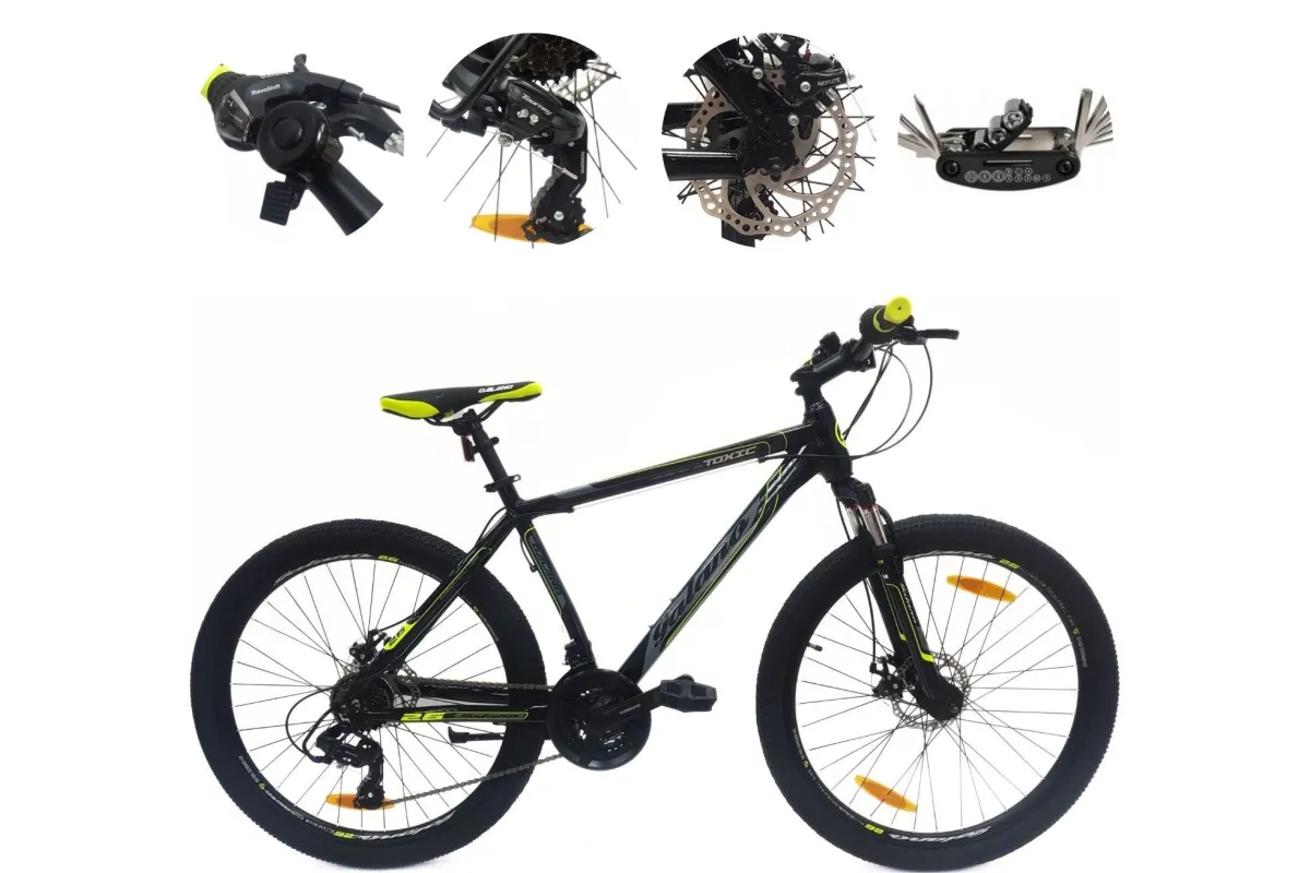 💎 Galano Toxic wyposażony został w ramę wykonaną z lekkiego aluminium, co sprawia, że jest łatwy do manewrowania i zapewnia stabilną jazdę nawet w trudnych warunkach terenowych. Hamulce tarczowe gwarantują szybką i skuteczną reakcję na potrzeby hamowania, co jest bardzo ważne podczas jazdy w terenie górskim.