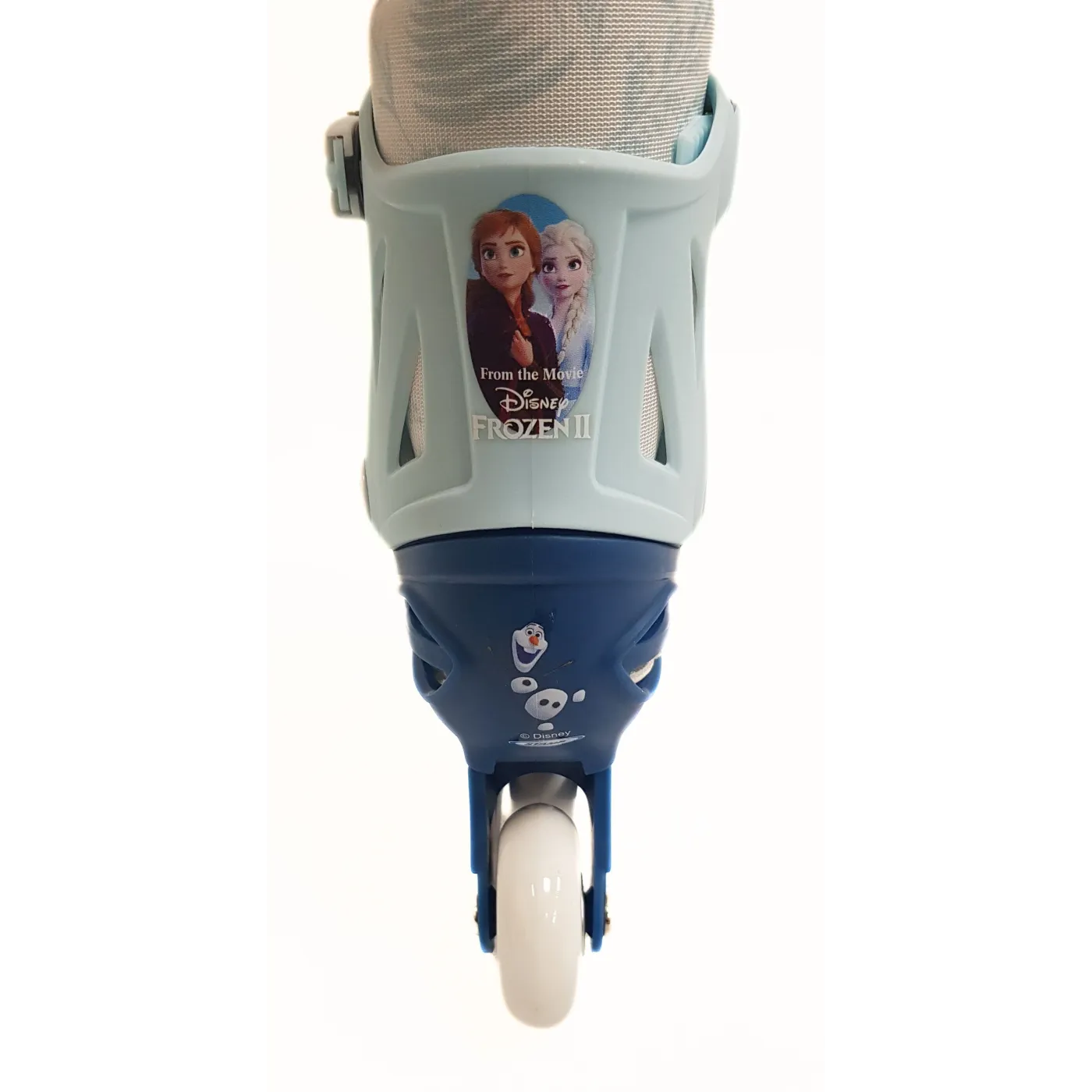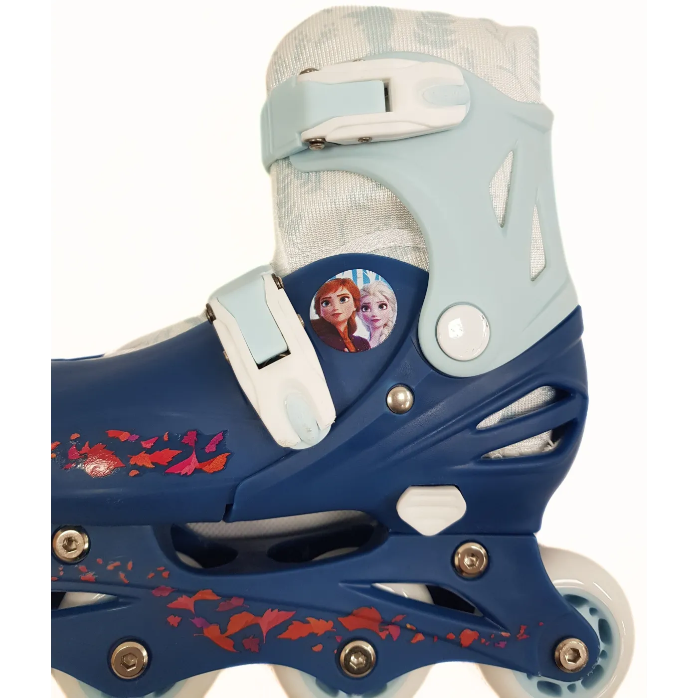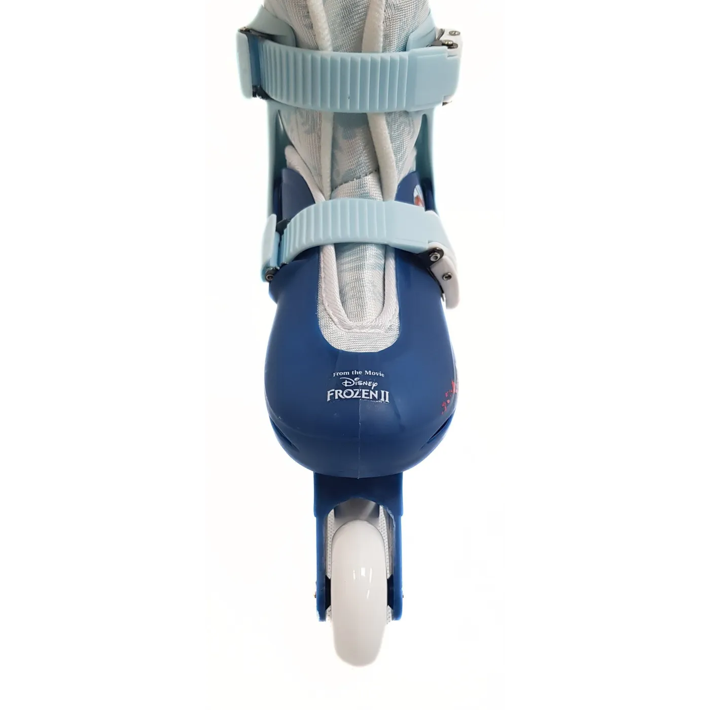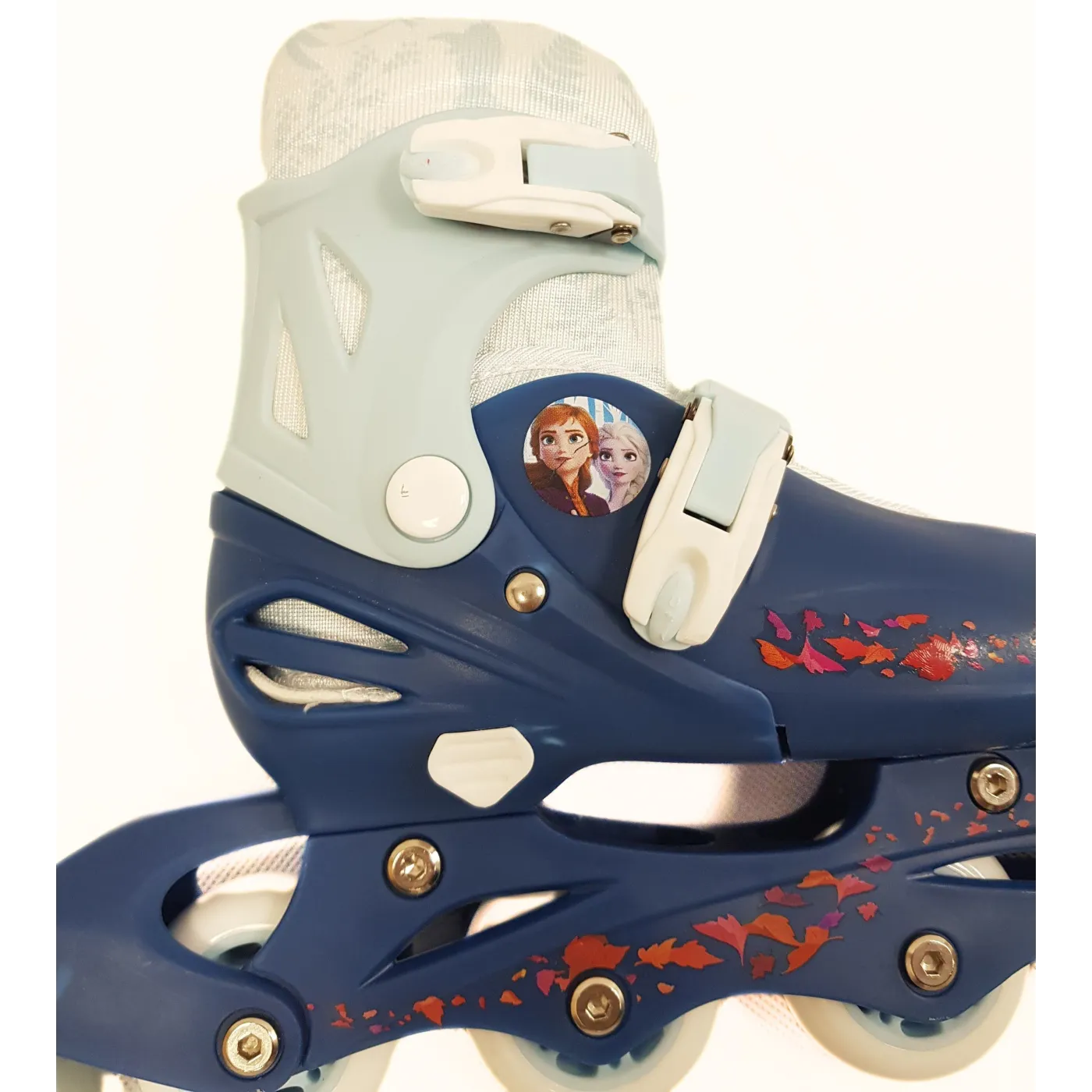 🌟 Te łyżworolki to wspaniała propozycja dla małych fanów królestwa lodu. W kolorze niebieskim, łączą w sobie funkcjonalność i świetny design. Z zamknięciem na klamrę oraz rzepy, bez problemu dopasujesz je do stóp dziecka. Wbudowany hamulec sprawi, że nauka jazdy będzie jeszcze łatwiejsza i bezpieczniejsza.